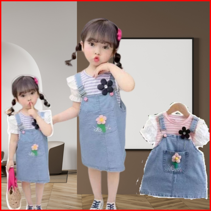 Rok Jeans Anak Perempuan Baju Kodok 2in1 Rok Jins 1-4 Thn Import Korean Style
