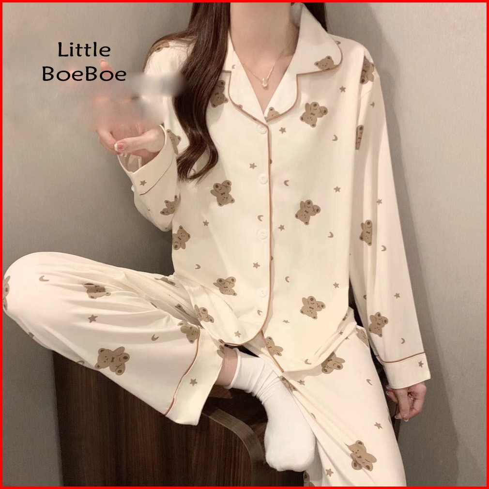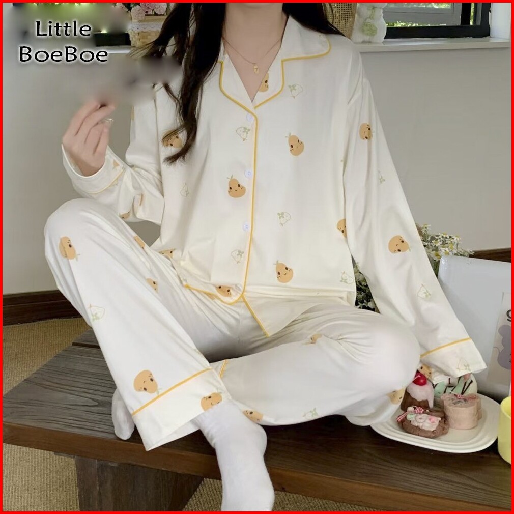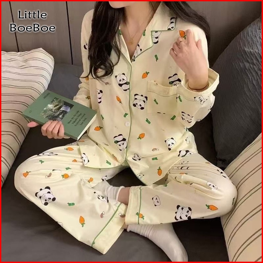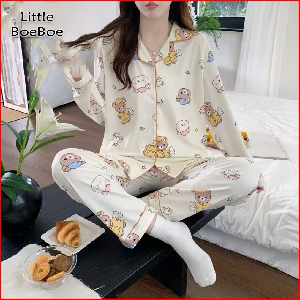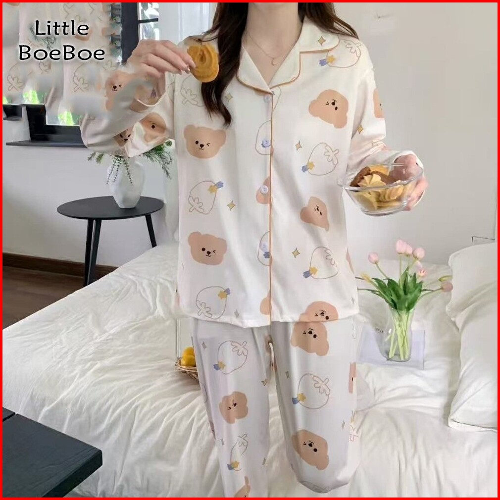 Little Boeboe - Catalina Piyama Baju Tidur Wanita Korea One Set Setelan Piyama Jumbo Lengan Panjang