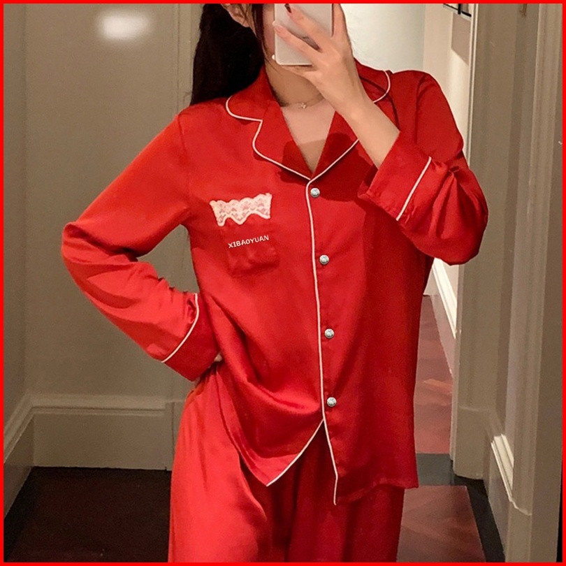 2023 Piyama Wanita Baru Renda Lengan Panjang Celana Panjang Celana Panjang Pakaian Rumah