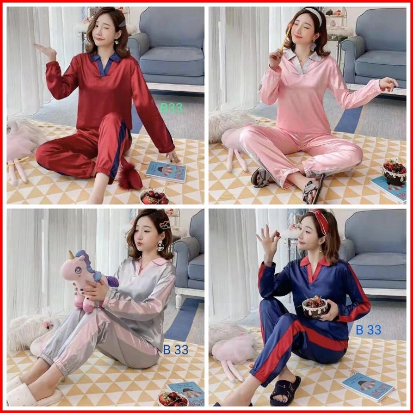 Piyama Import Satin Setelan Tidur Satin Celana Panjang Piyama Satin Celana Panjang Piyama Satin Murah C09-a2