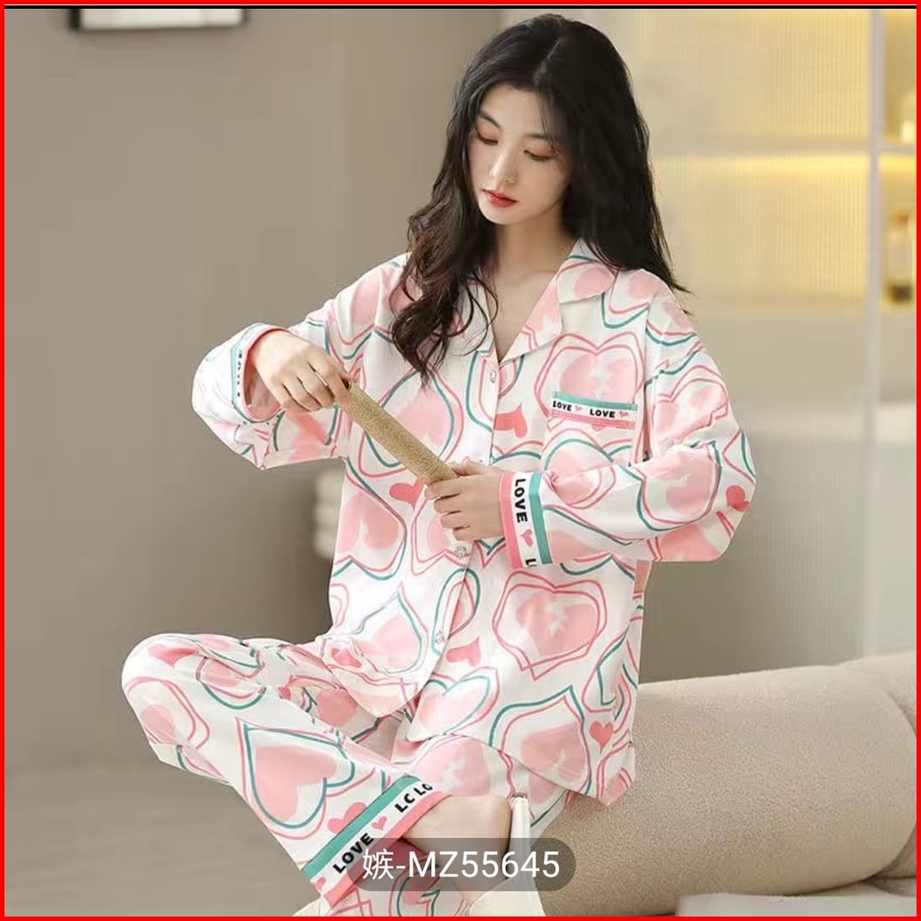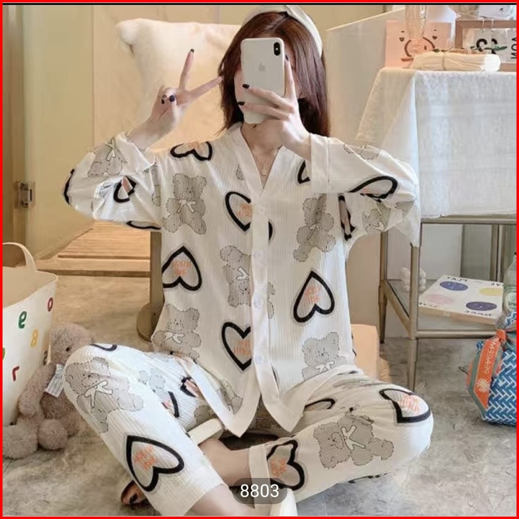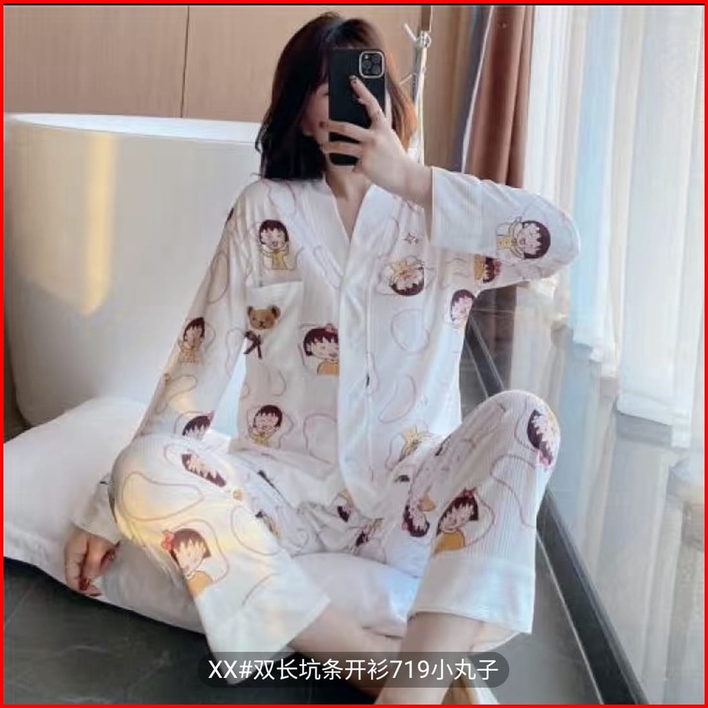 Setelan Setcel One Set Piyama Baju Tidur Wanita Dewasa Korea Pp Katun Import Vneck Lengan Panjang Premium Motif Busui Re