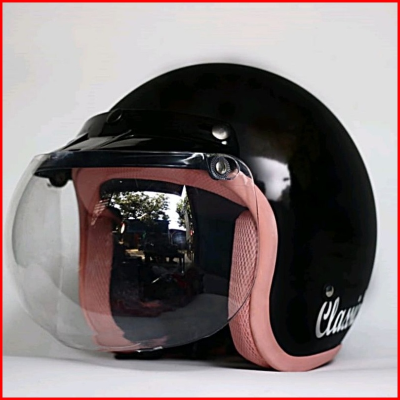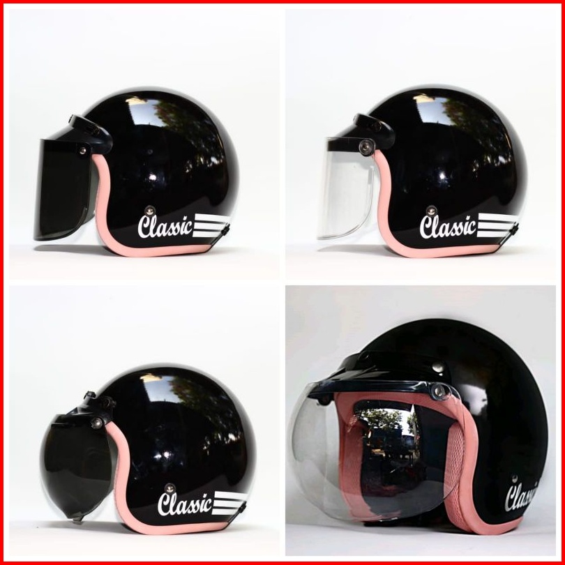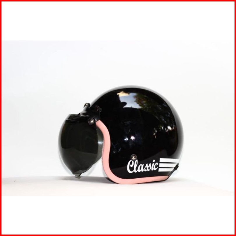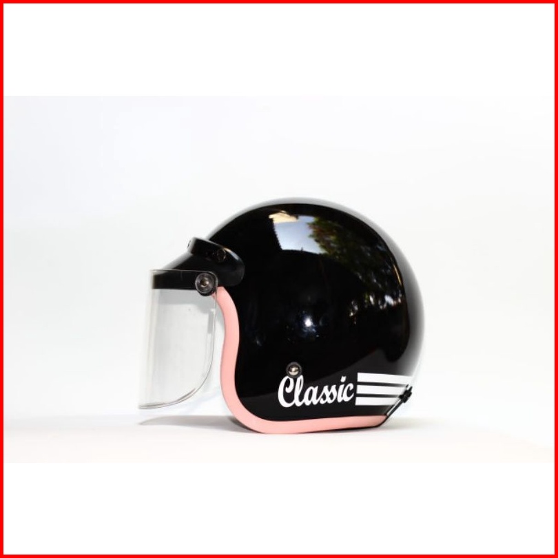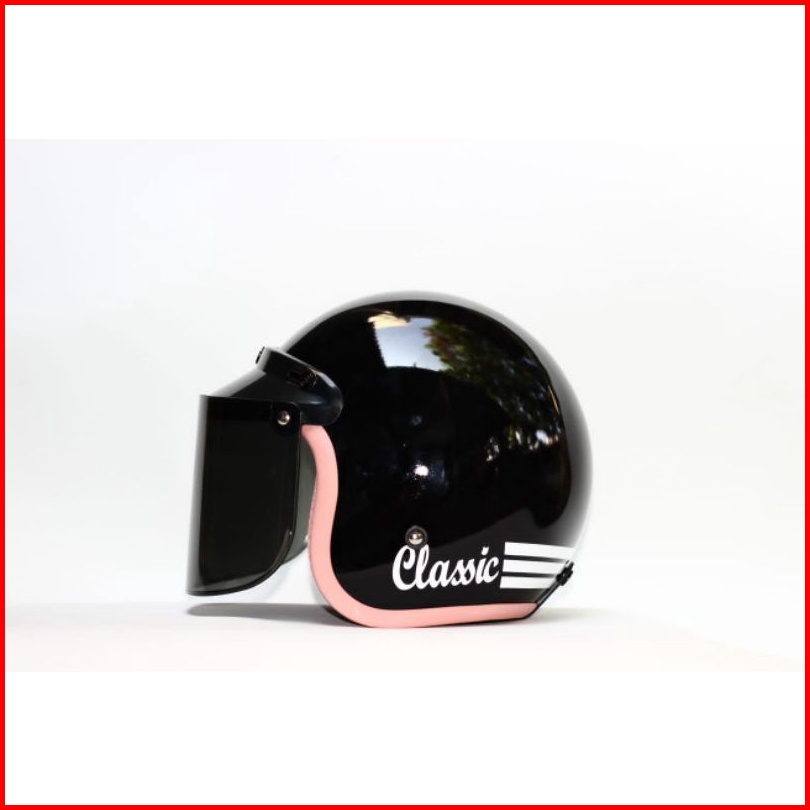Helm Bogo Retro Hitam Glossy List Pink