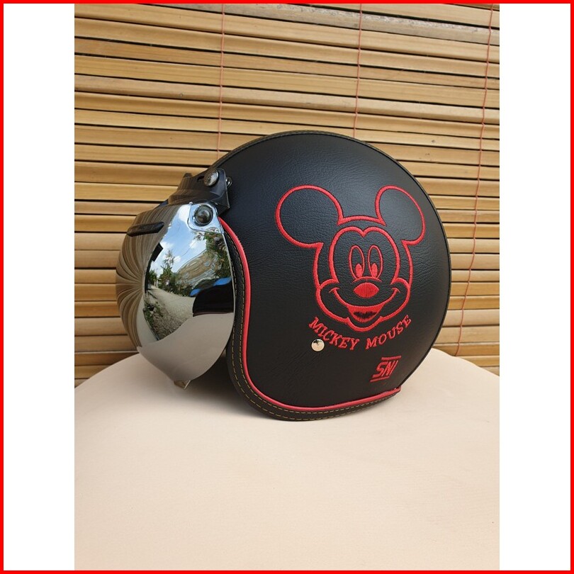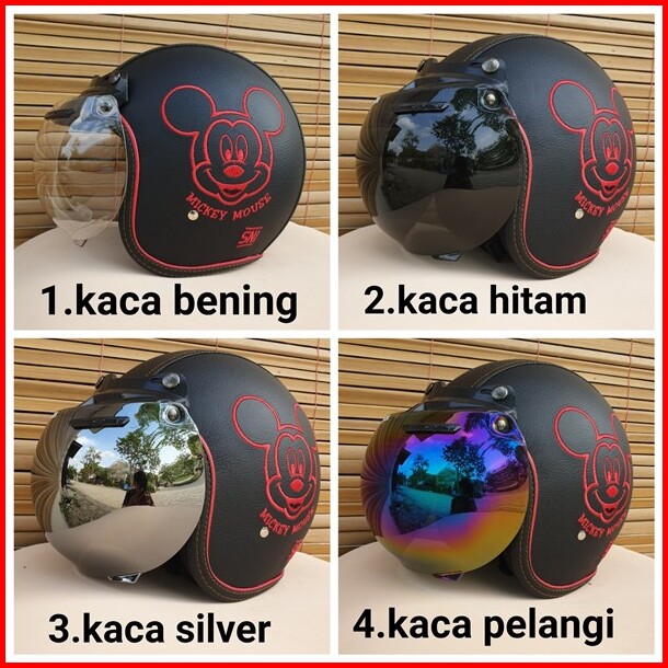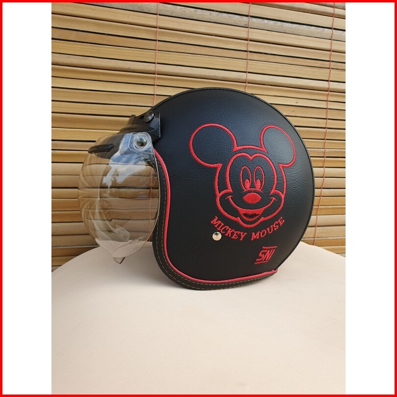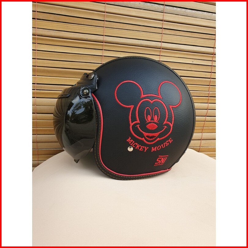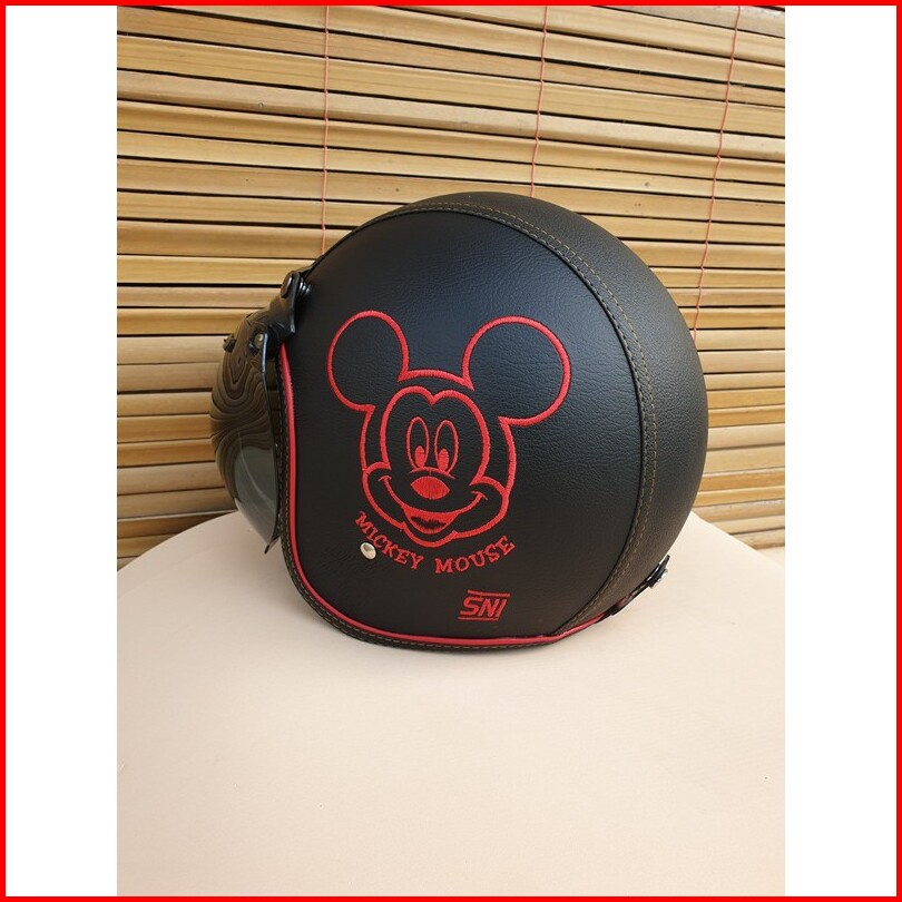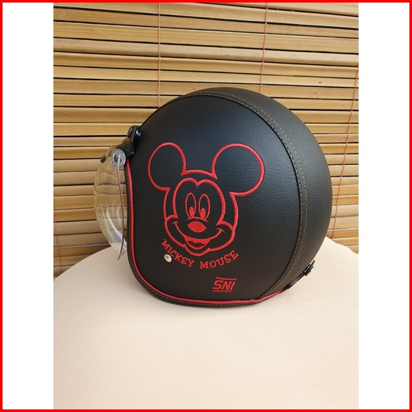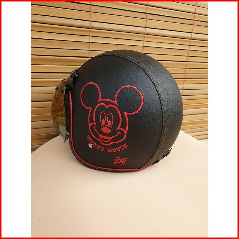 Helm Bogo Dewasa Gambar Mickey Mouse Warna Hitam Motif Gambar Bordir