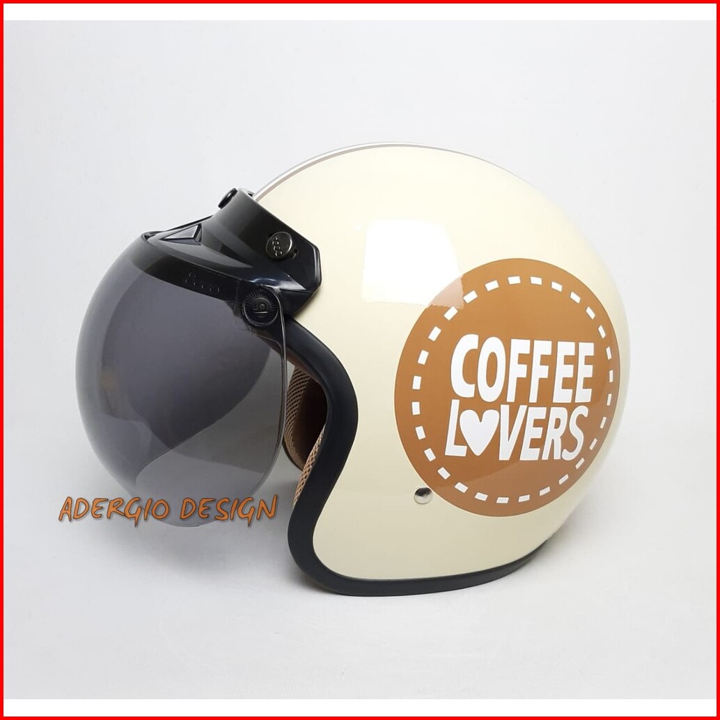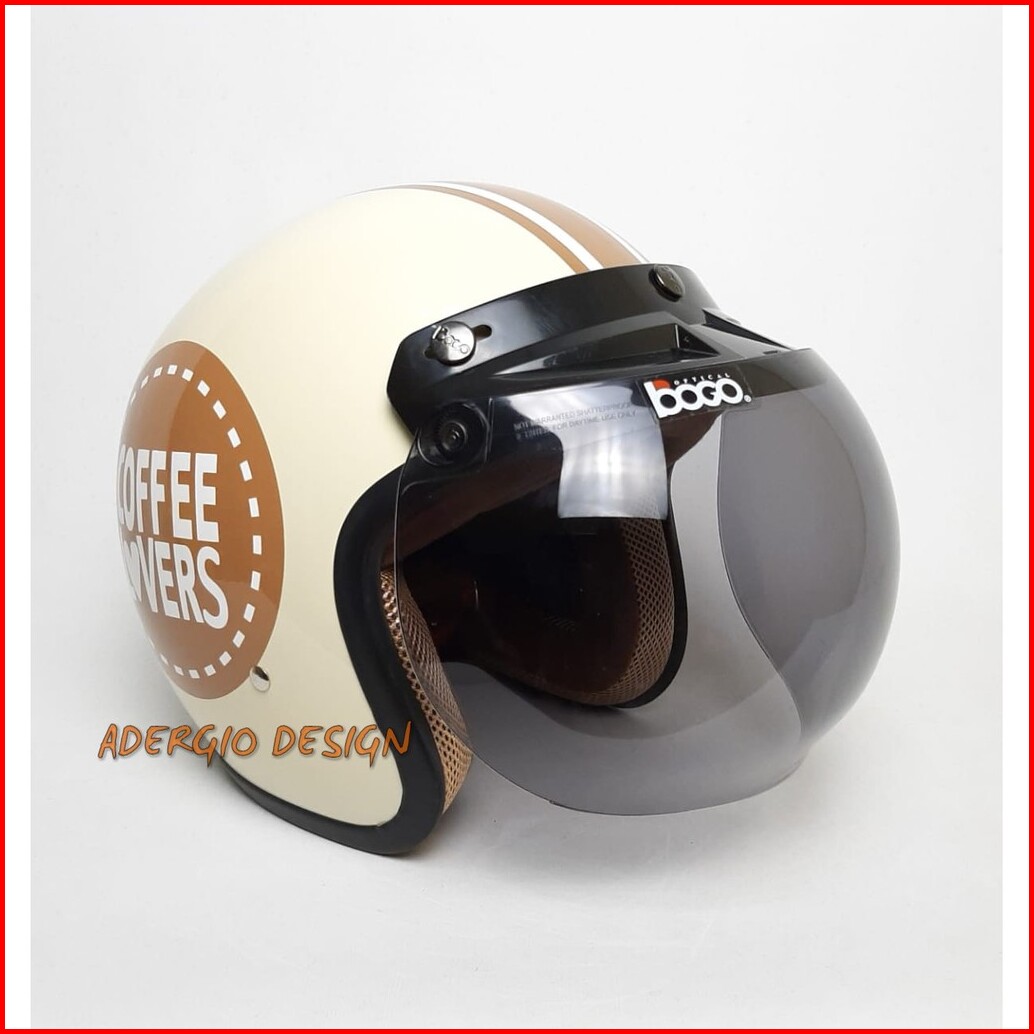 Thinos Helm Bogo Retro Dewasa Sni Kaca Bogo Ori Motif Coffee Cream Glossy
