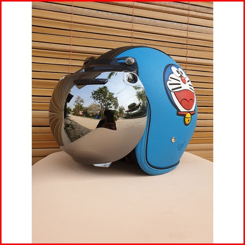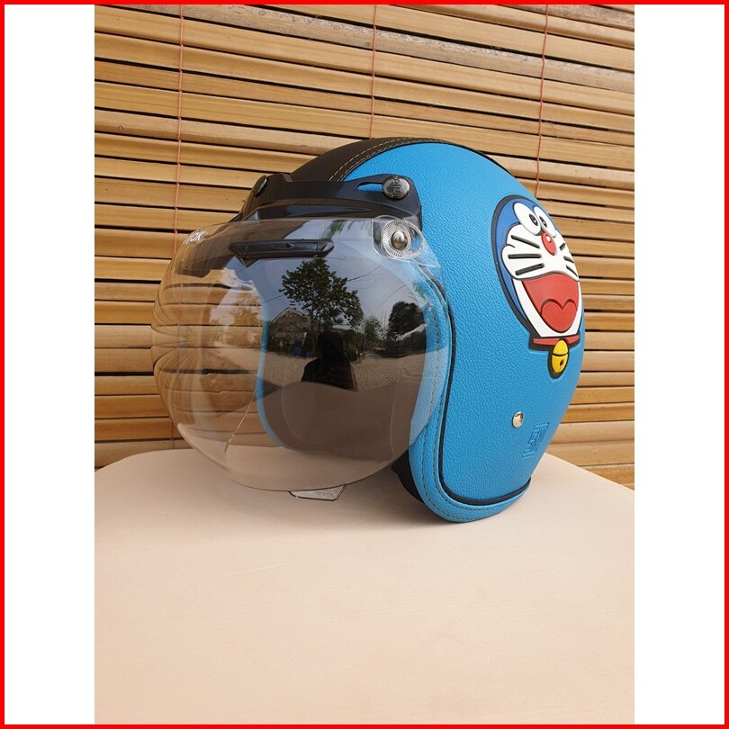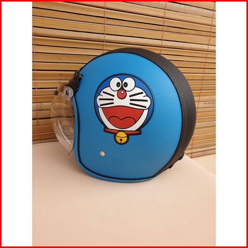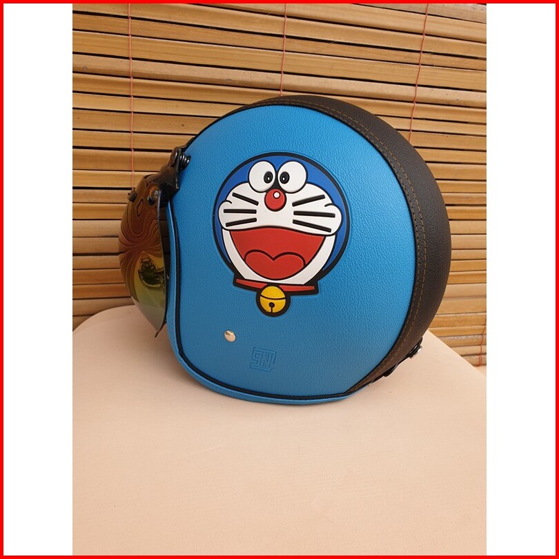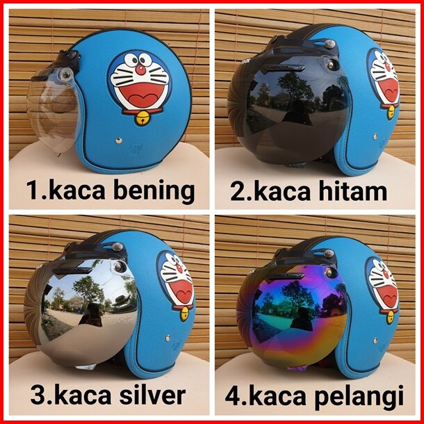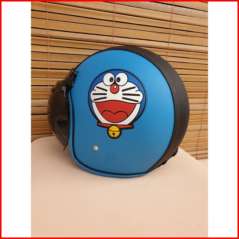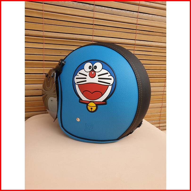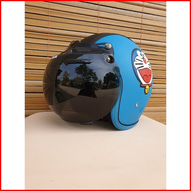 Helm Bogo Dewasa Motif Doraemon Warna Biru Muda Hitam