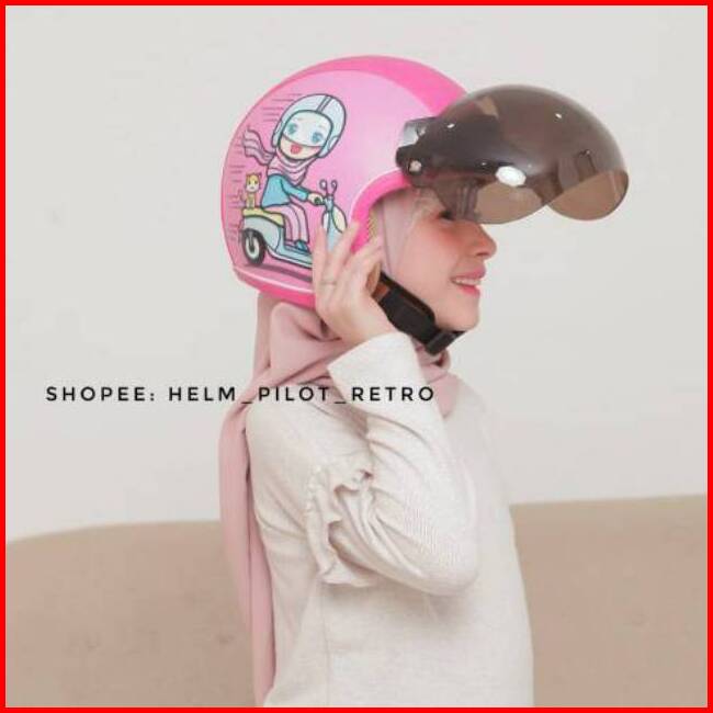 Helm Bogo Anak Karakter Hijab Helm Doraemon Hk Pink Kaca Cembung