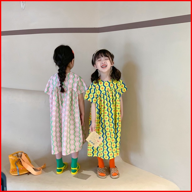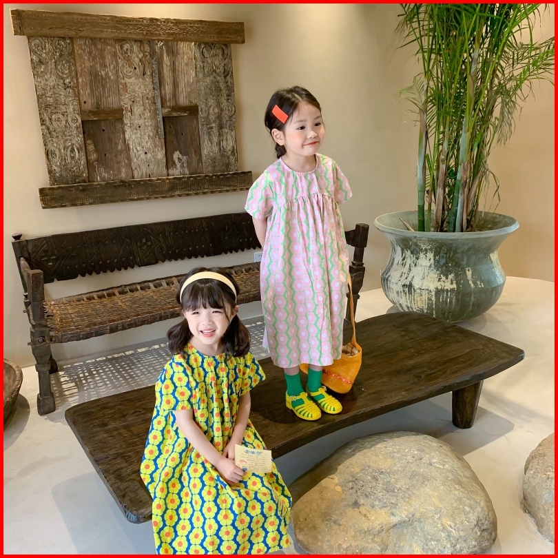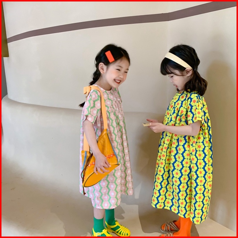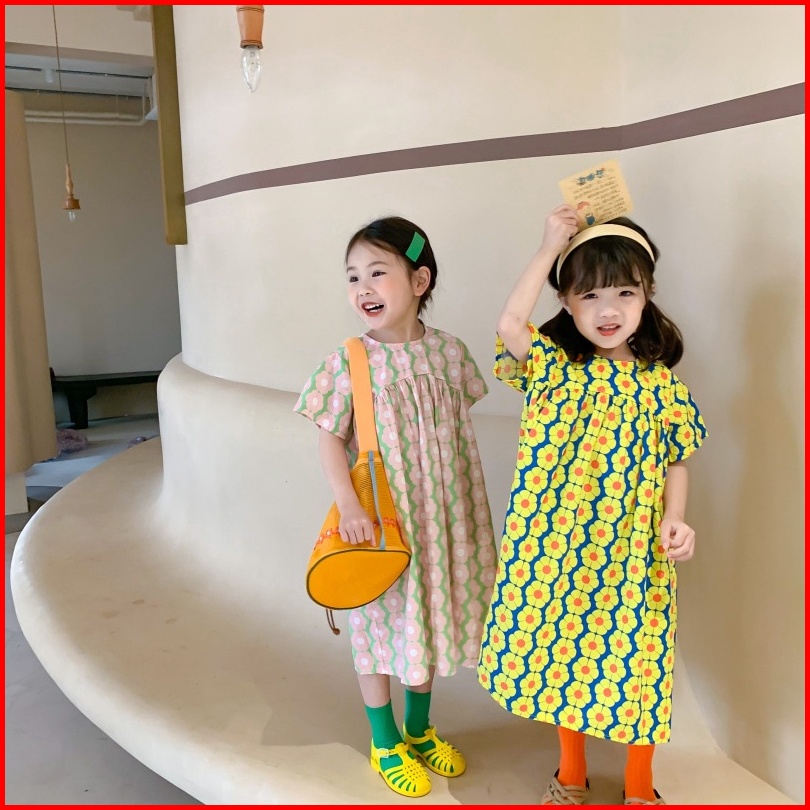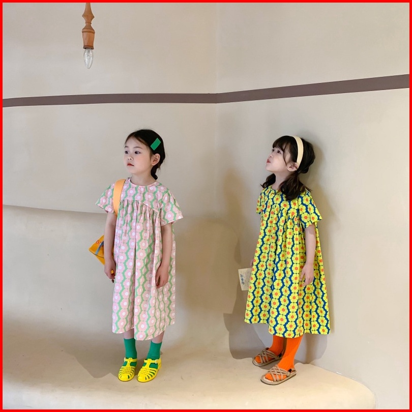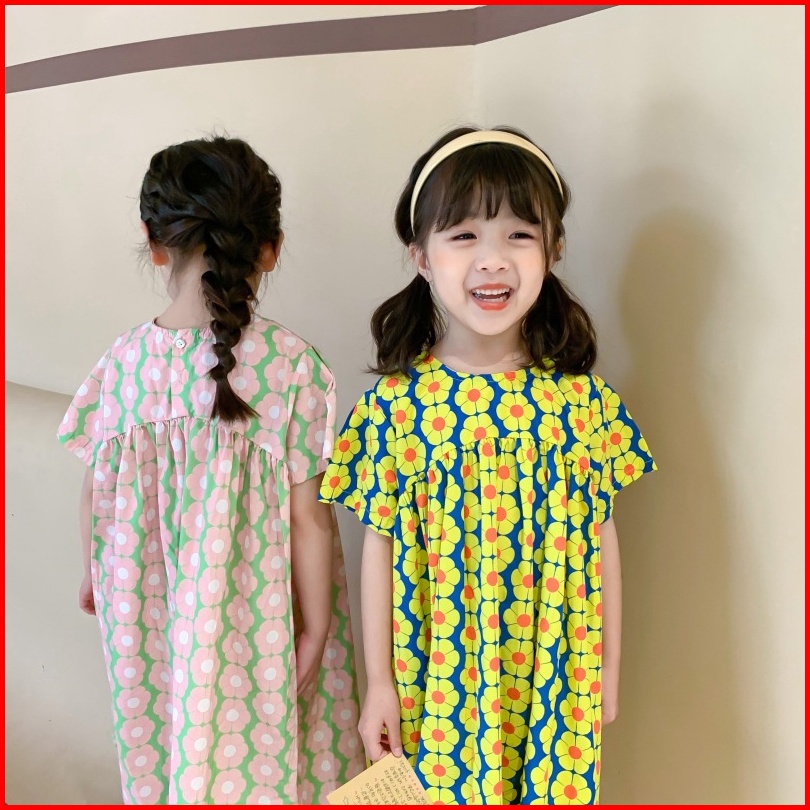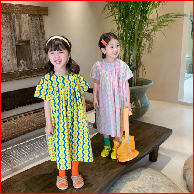 Dress Anak Perempuan Korea Style Baju Anak Perempuan Bunga Neon