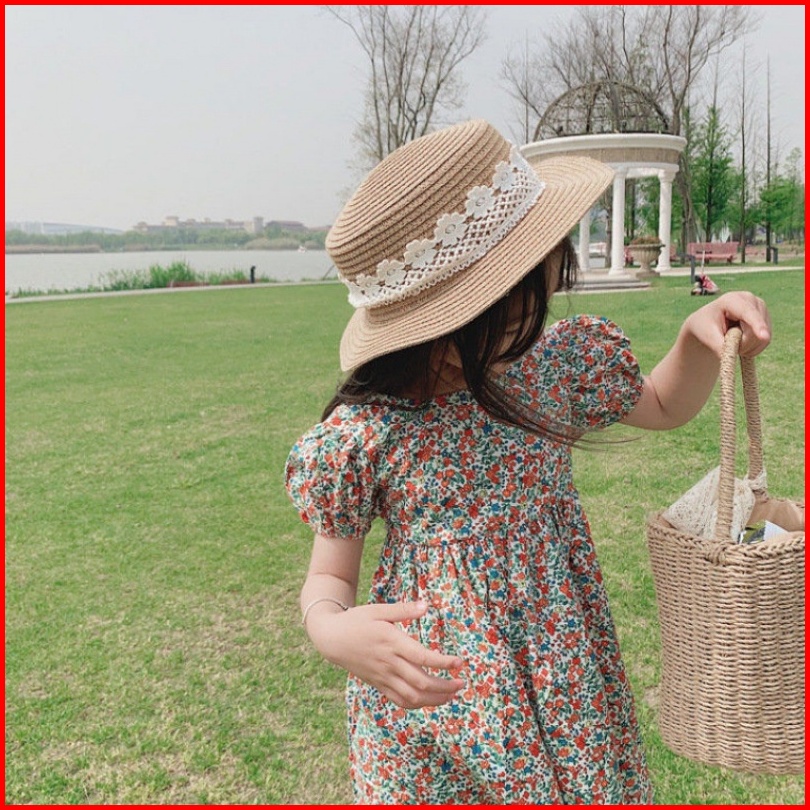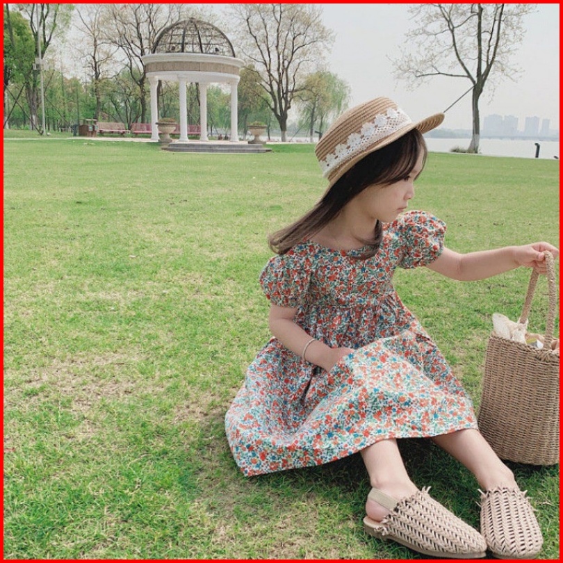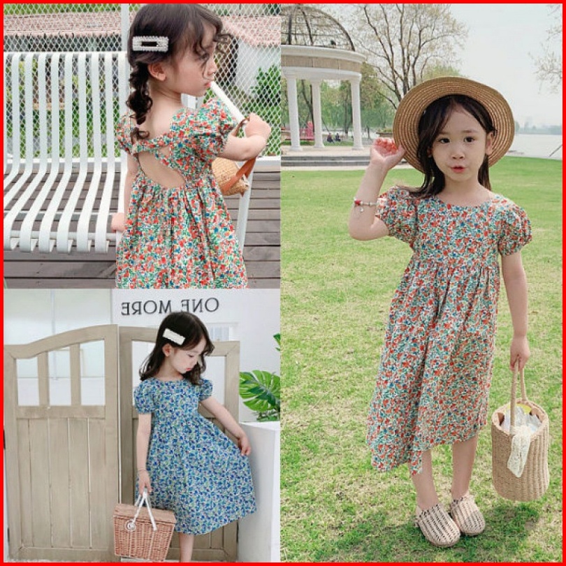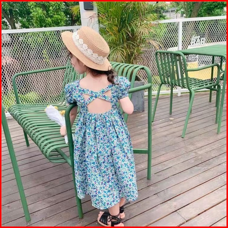Haasya Kids 2-7 Tahun Gadis Gaun Bunga Harta Karun Wanita Rok Panjang Musim Panas Buka Kembali Selutut Rok Anak Musim Pa