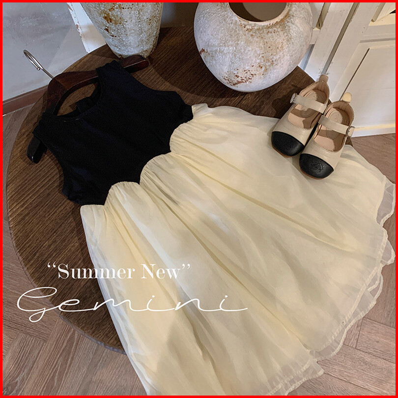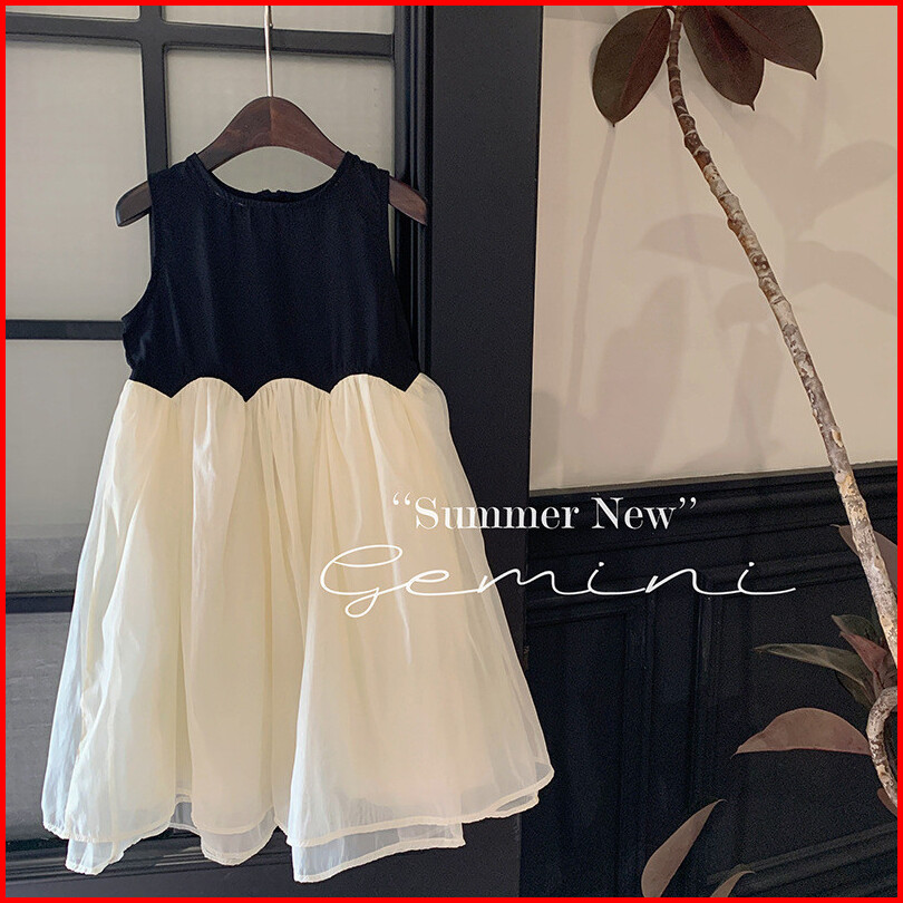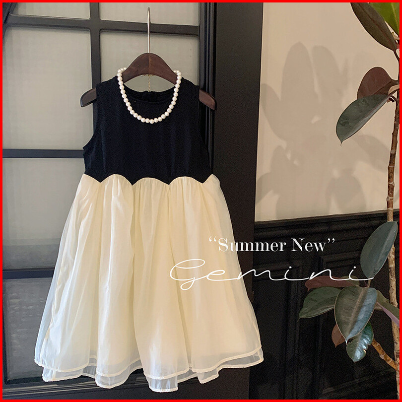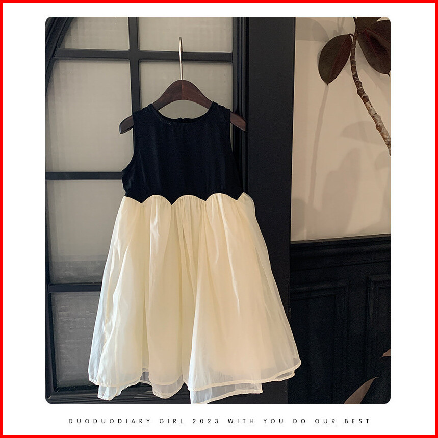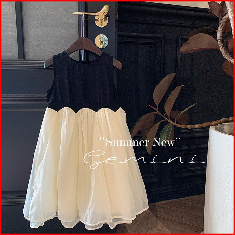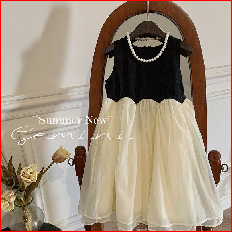 Haasya Kids 2-6 Tahun Pakaian Anak-anak Versi Korea Untuk Anak Perempuan Gaya Musim Panas Gaya Asing Kontras Gaun Tanpa