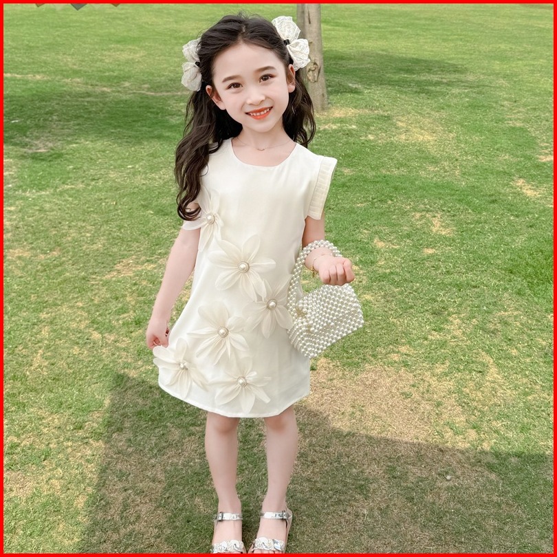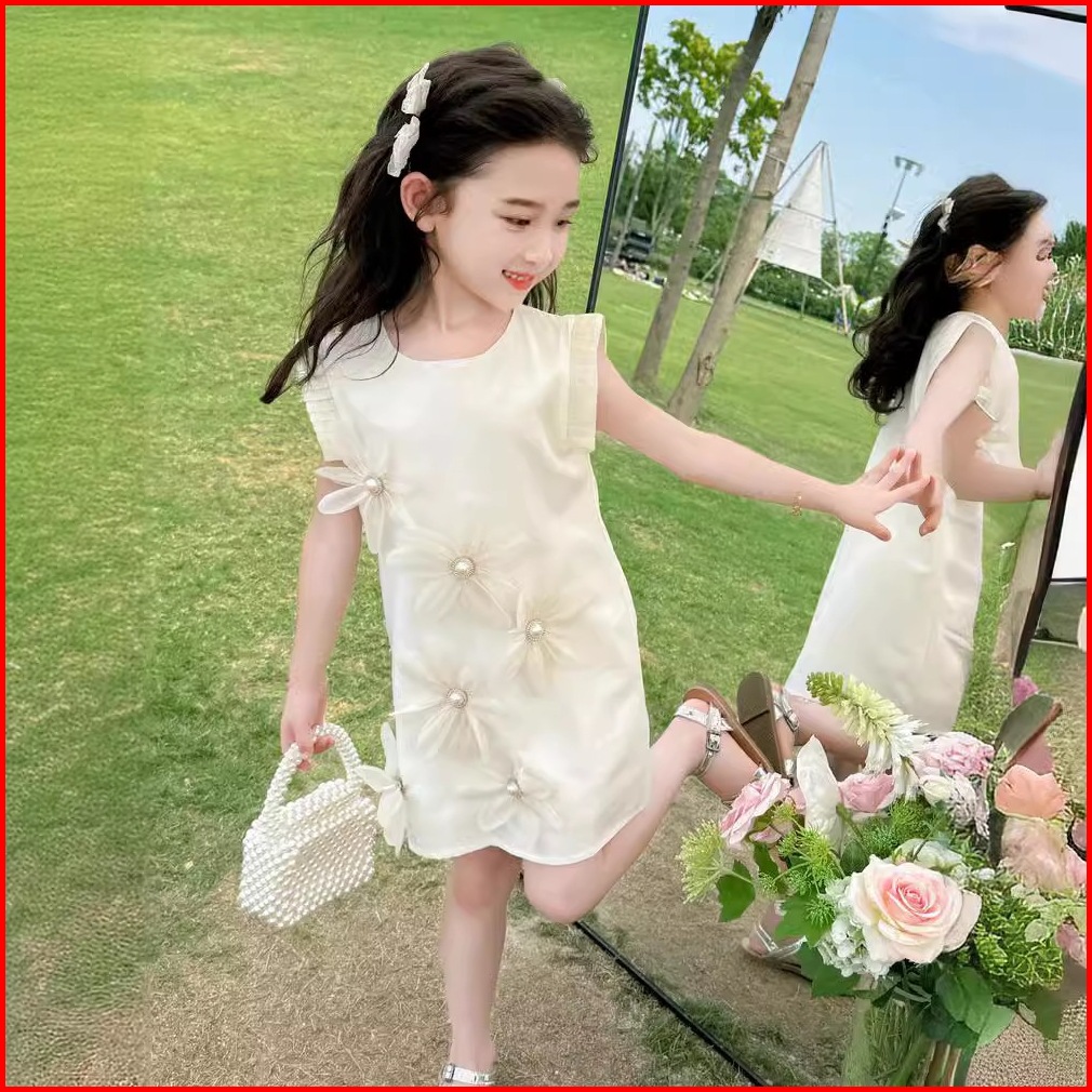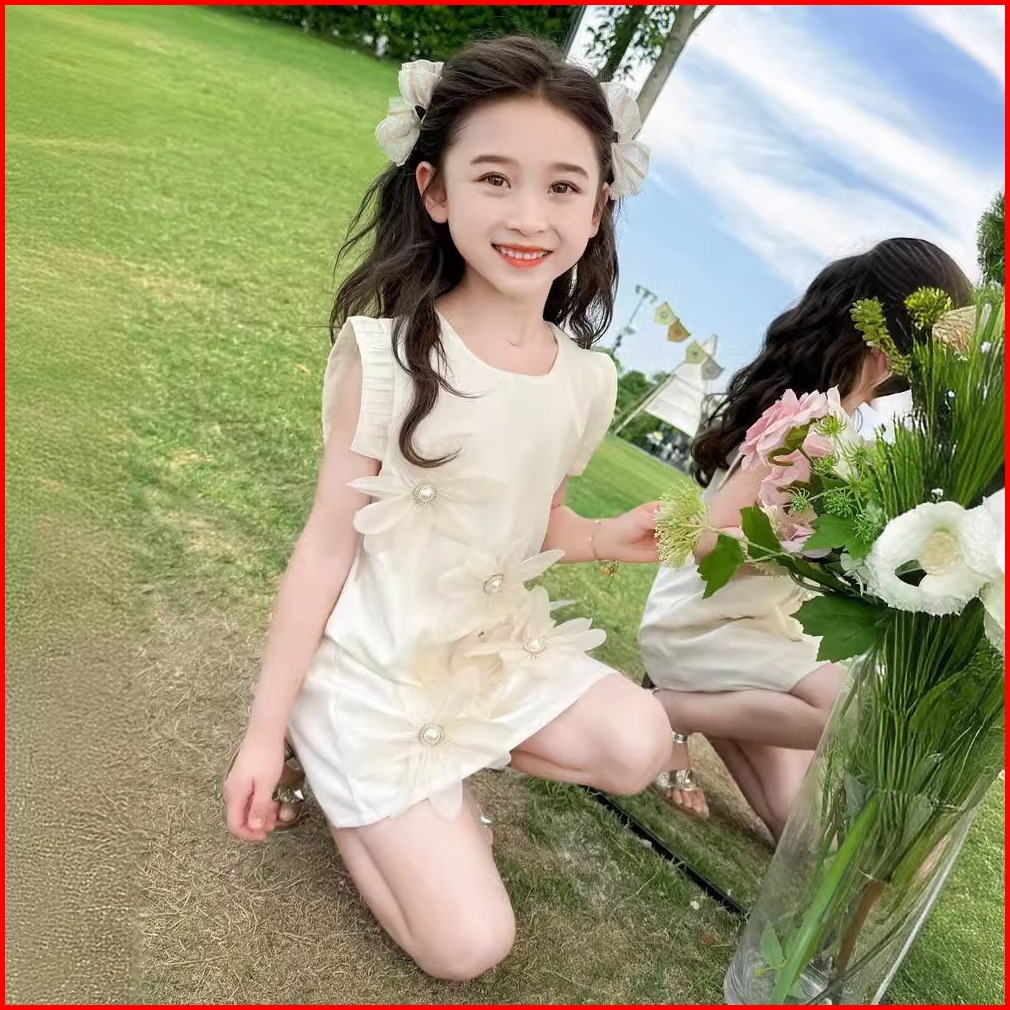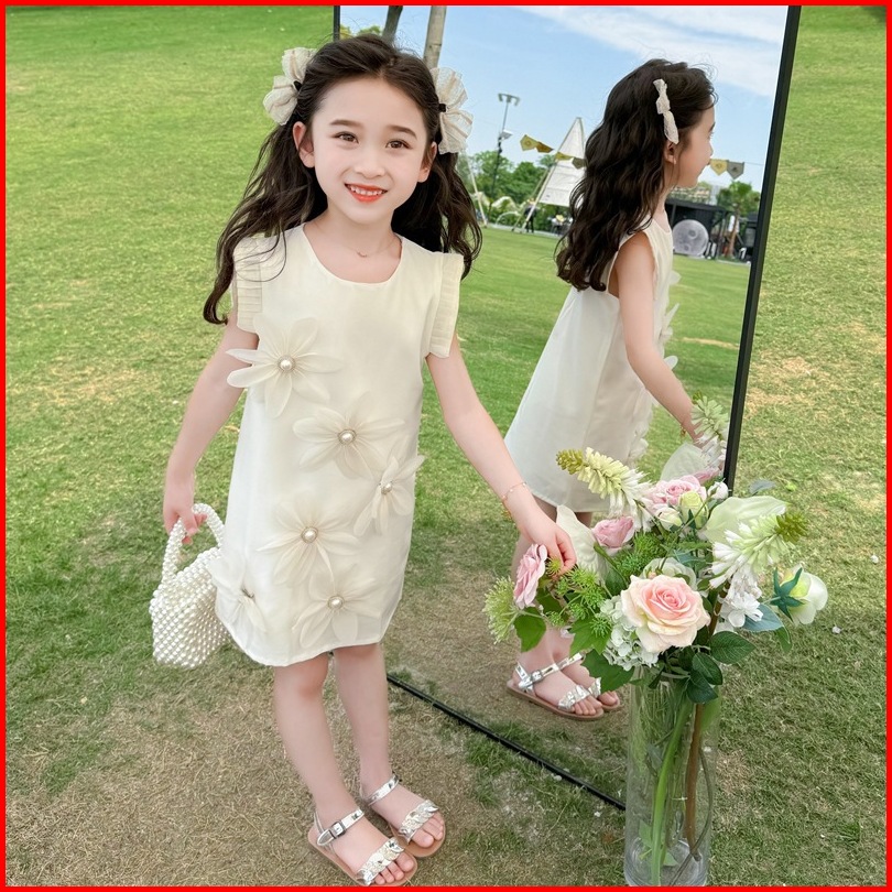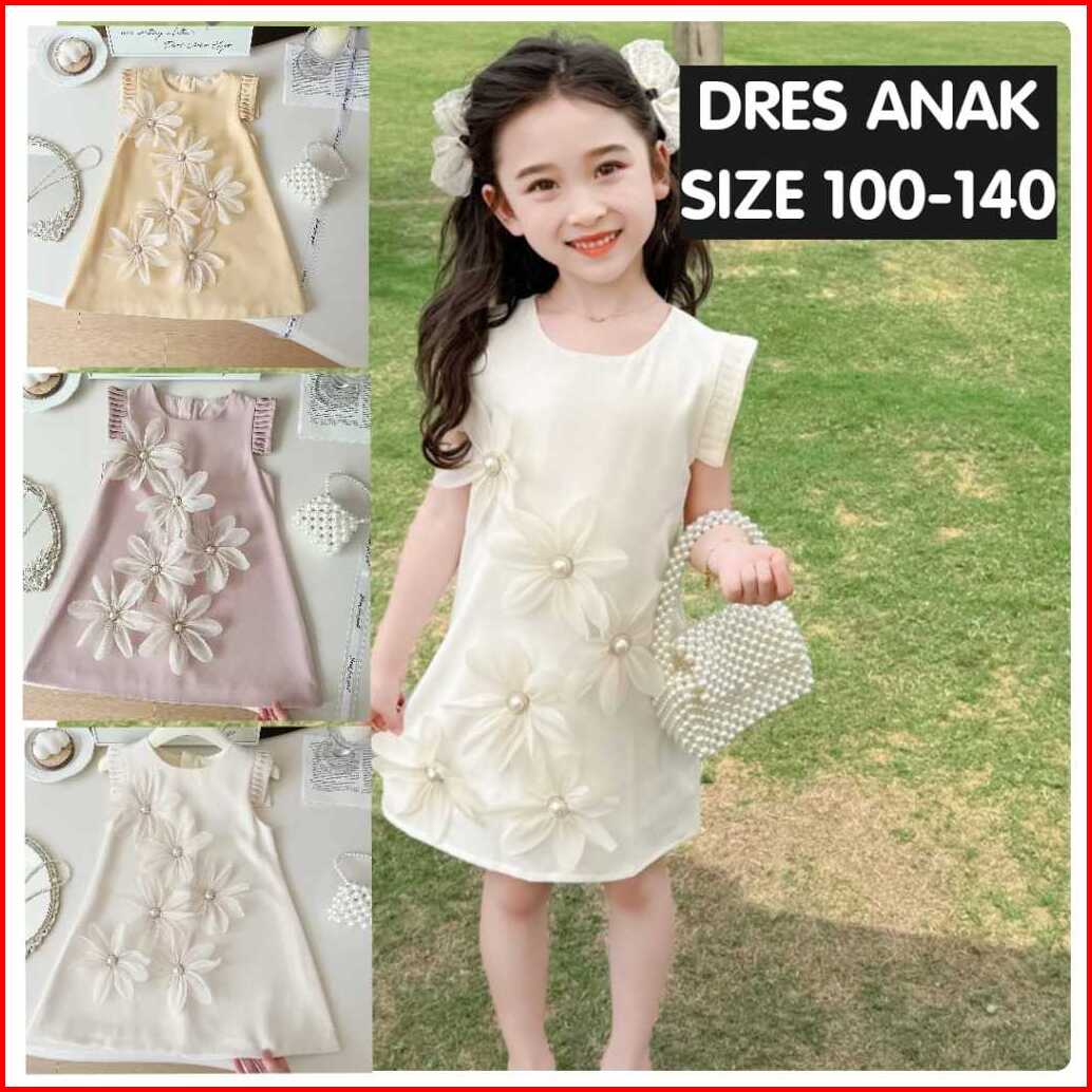 Loli-jkt Bd- 657 Dress Anak Tanpa Lengan Bunga Elegan Timbul Bahan Halus Size 100-150