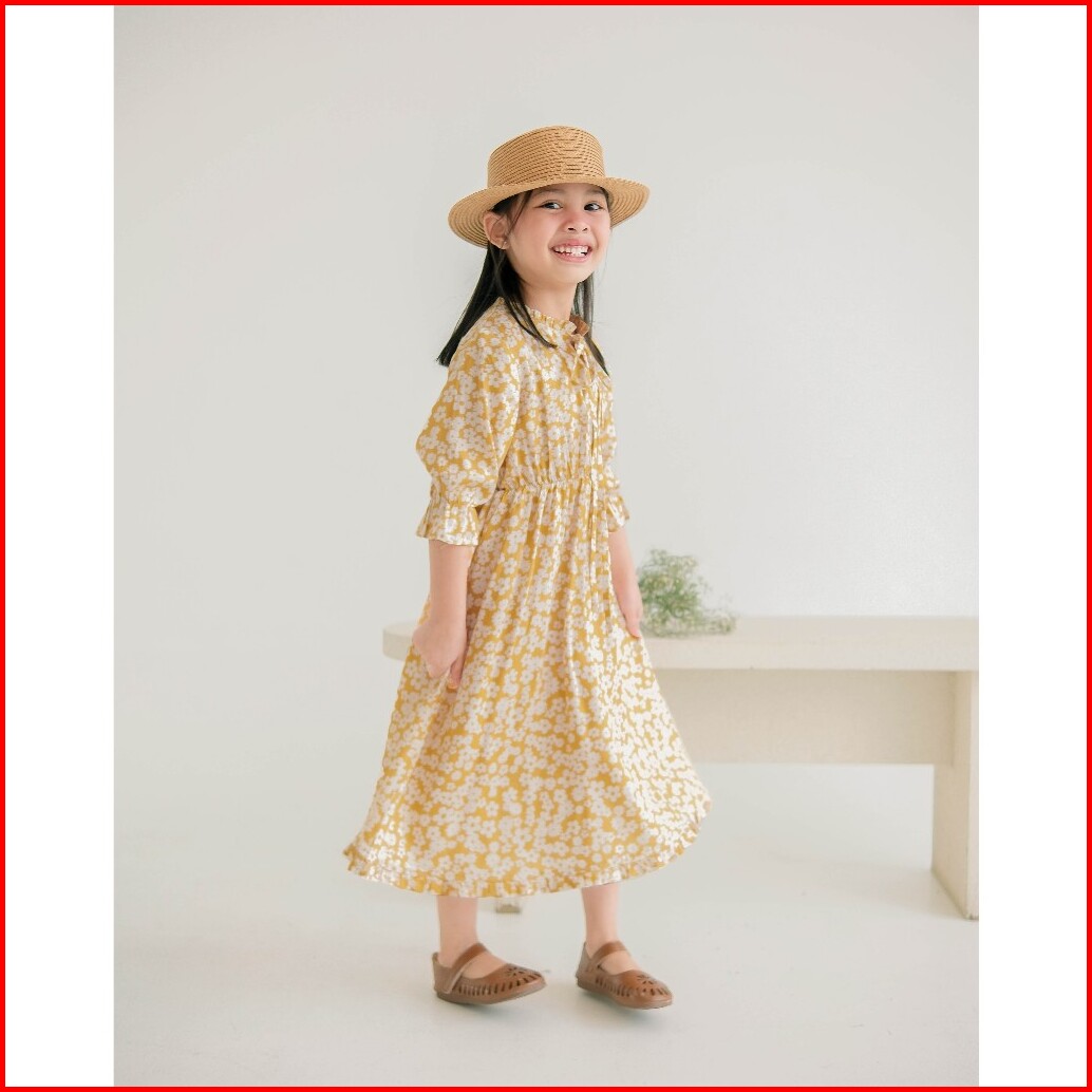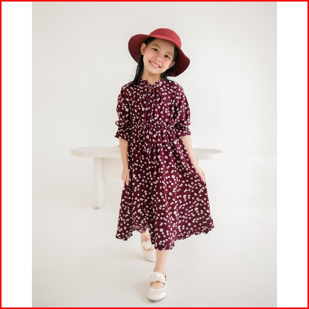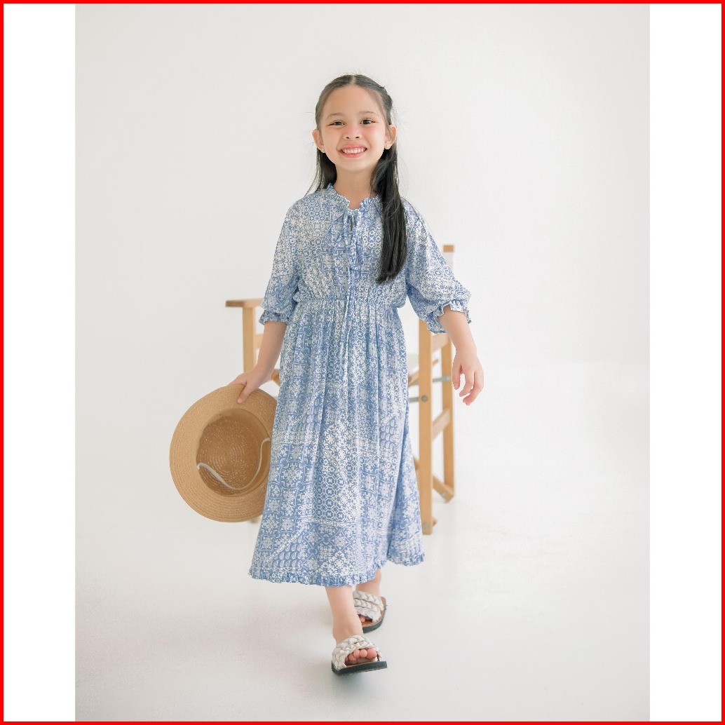 Marme Midi Dress Dress Anak Perempuan Dress Anak Motif Midi Dress Anak Dress Katun Rayon Crinkle Anak Dress Anak Musim P