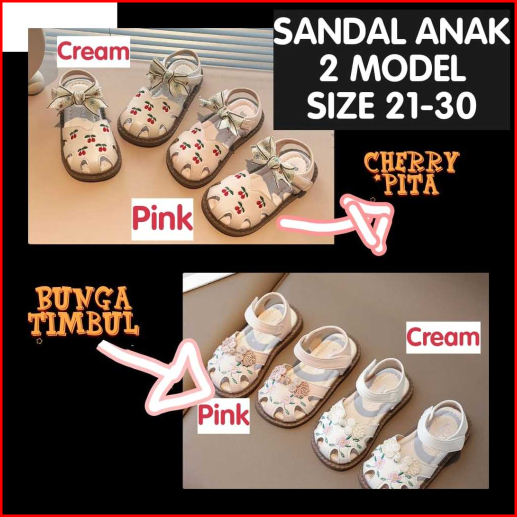 Loli-jkt Sd- 1803 Sandal Flat Anak 2 Model Bordir Timbul Size 21-31