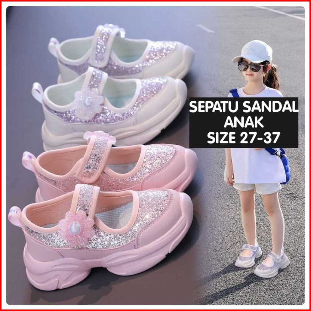 Loli-jkt Sp- 897 Sepatu Sandal Anak Bling Bling Perekat Bunga Timbul Size 27-37