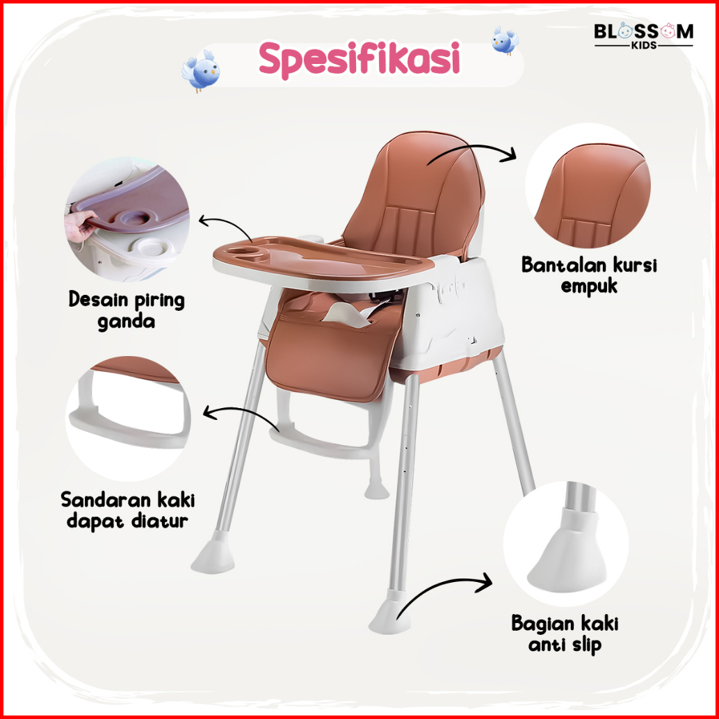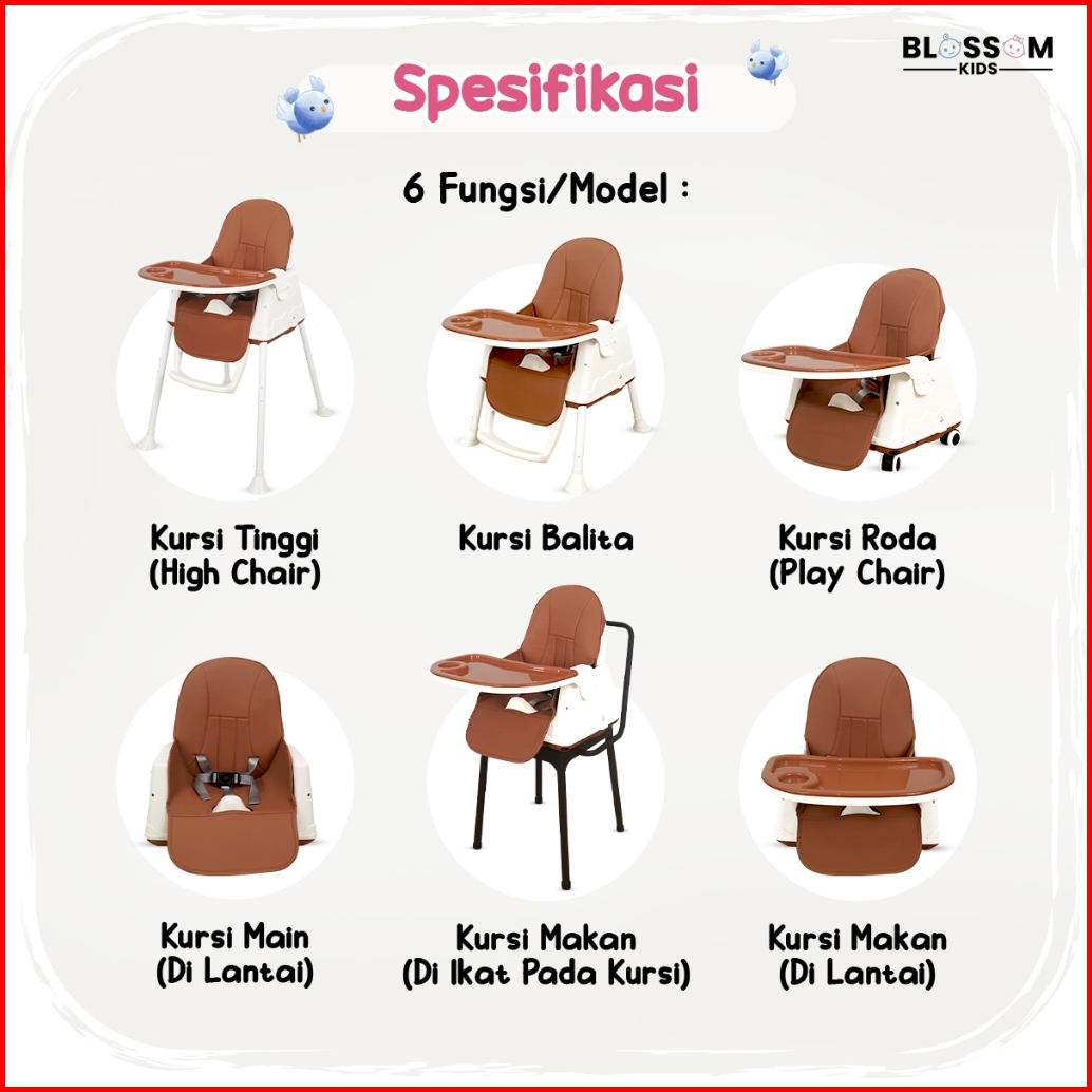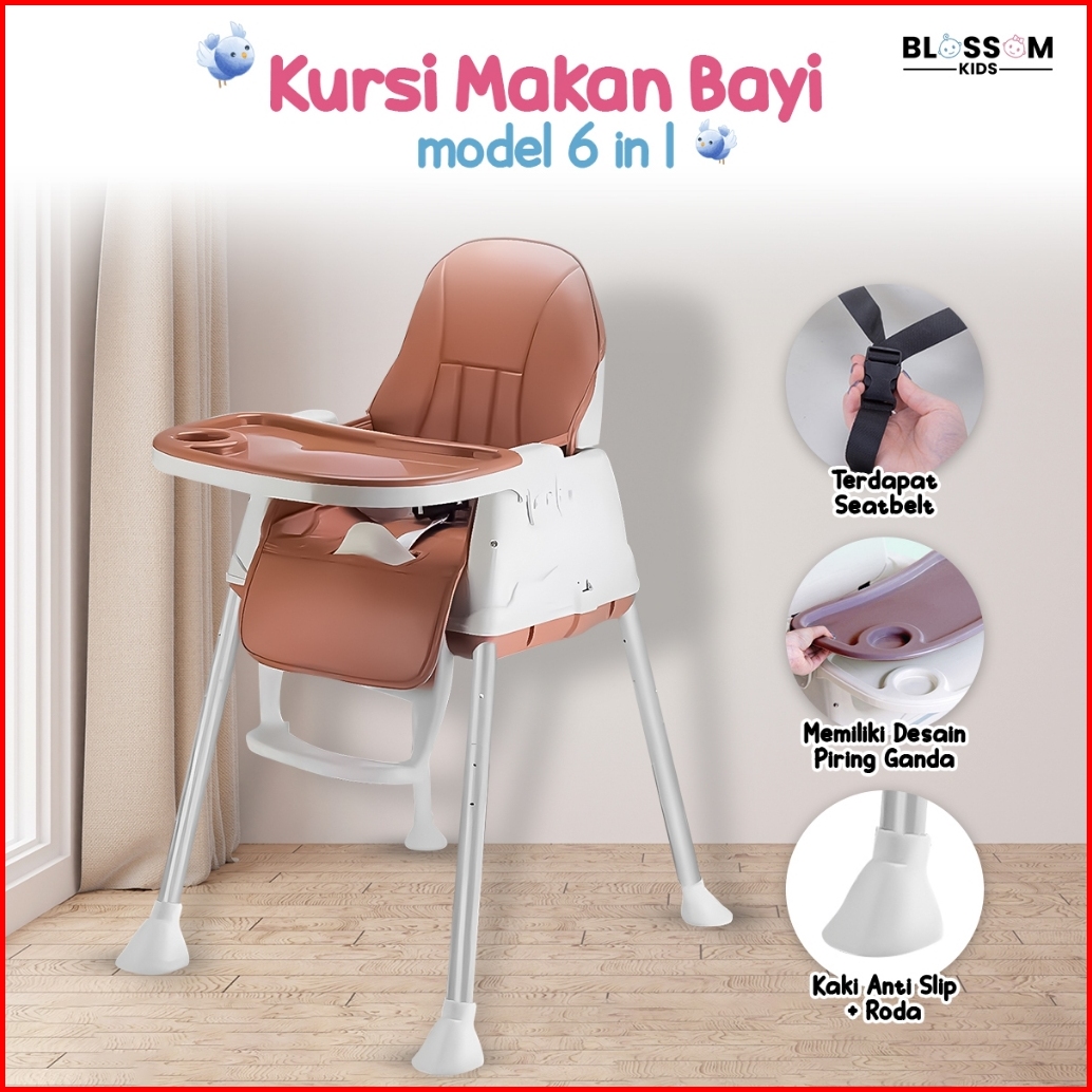 Kursi Makan Bayi 6 Growing Stages Fleksibel Dengan Roda Baby Meal Chair With Scooter Blossom Kids