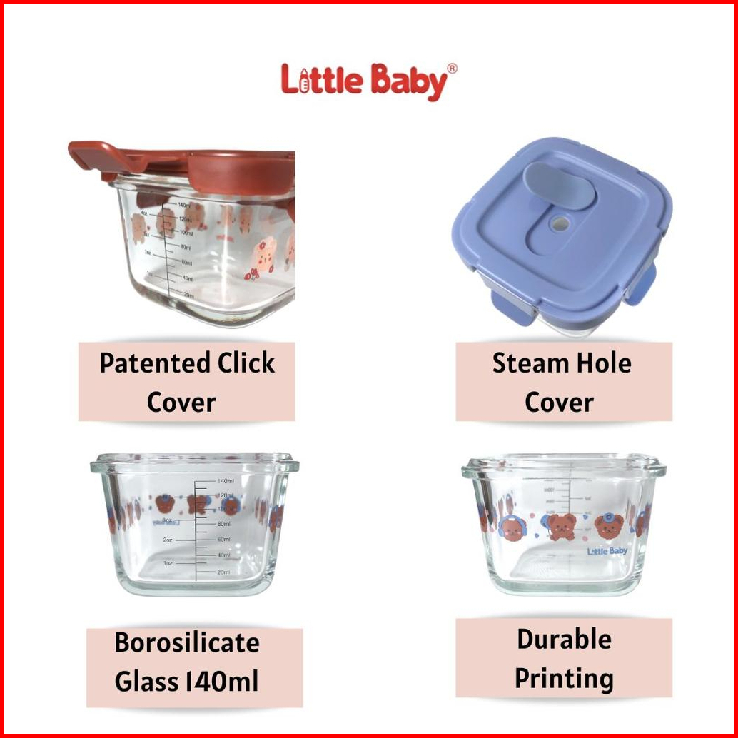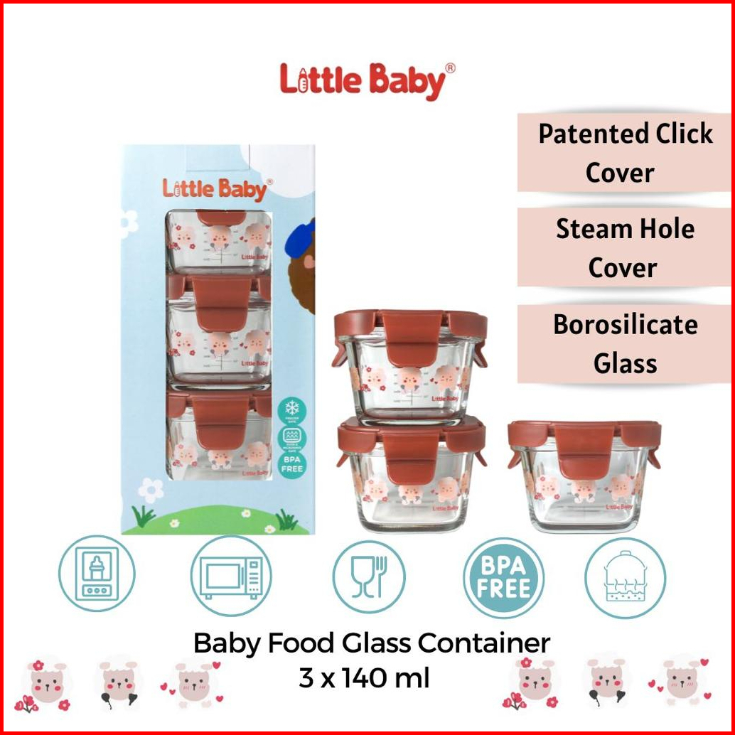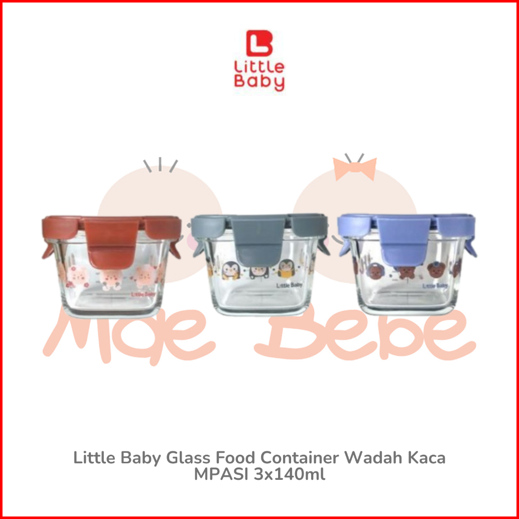 Little Baby Glass Food Container Wadah Kaca Mpasi Kedap Udara 3 Pcs 140ml