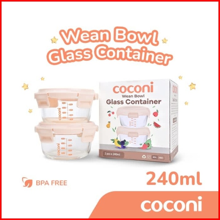 Coconi Wean Bowl Glass Container 240ml 2pcs Wadah Mpasi Kaca