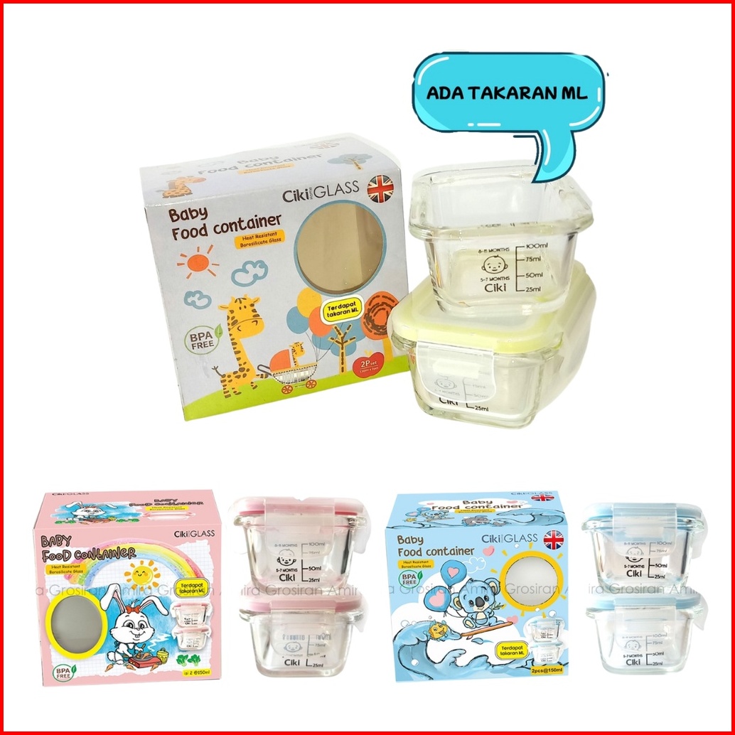 Food Container 150ml Kotak Makan Kaca Untuk Mpasi Isi 2 Ada Takaran Ml
