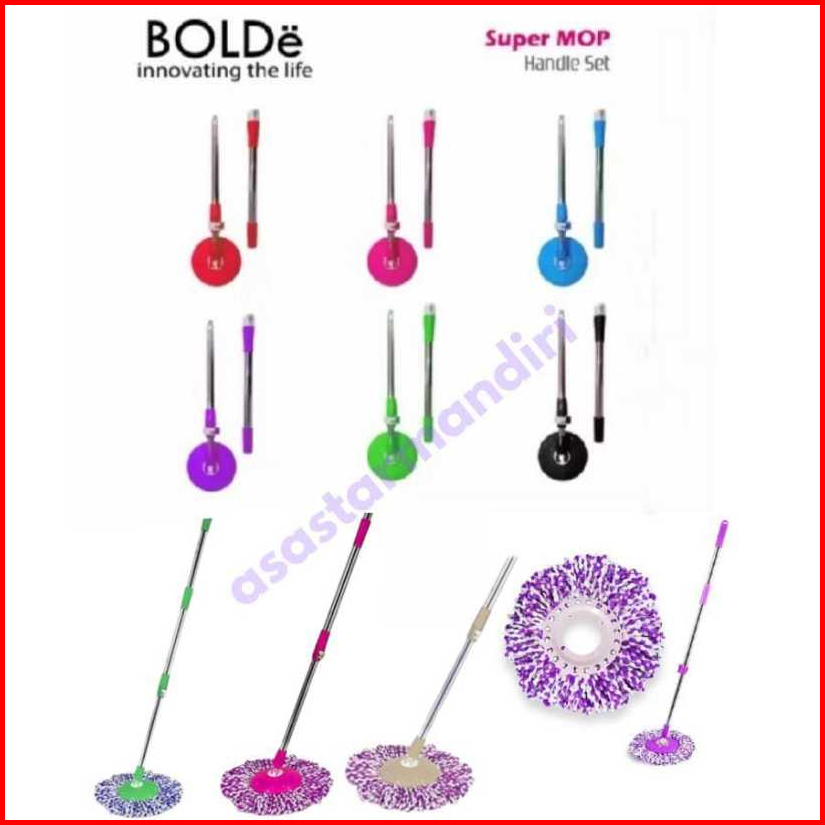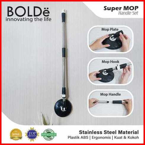 Bolde Handle Set Super Mop Gagang Tongkat Dan Kepala Mop Dan Kain Pel Tongkat Gagang Handle Lap Pel