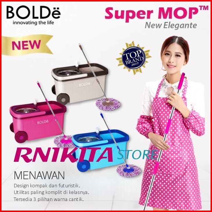 Alat Pel Bolde Super Mop Elegante 8l Roda Lubang Drainage Saringan Stainless Microfiber Sistem Putar