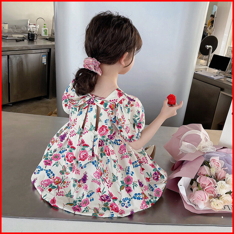 Haasya Kids 2-6 Tahun Gaun Bunga Yang Cocok Di Musim Panas Dengan Paduan Rok Motif Prancis