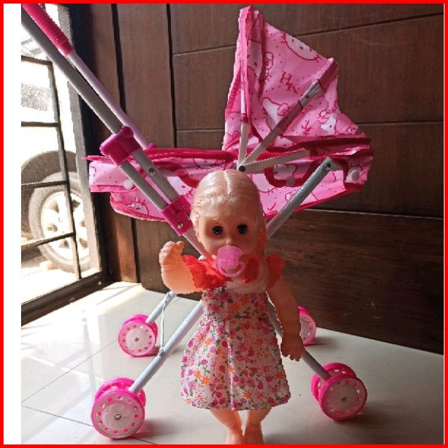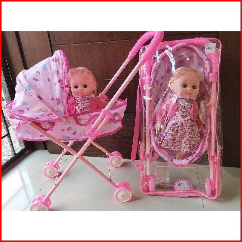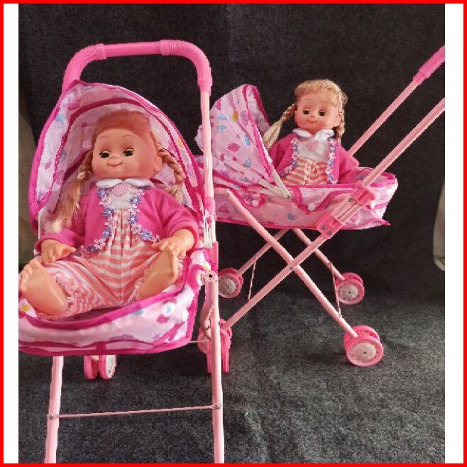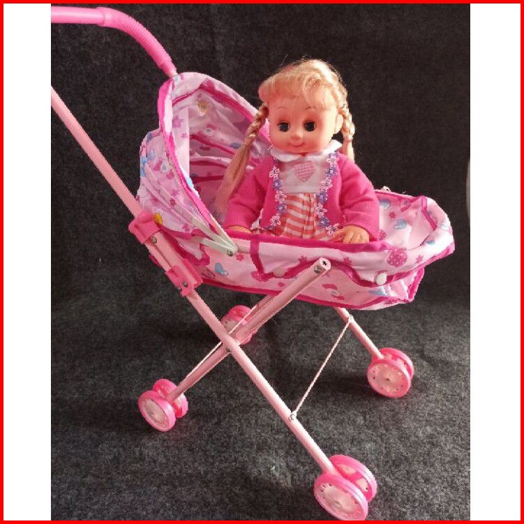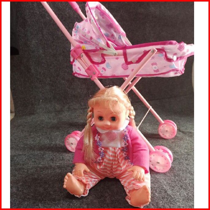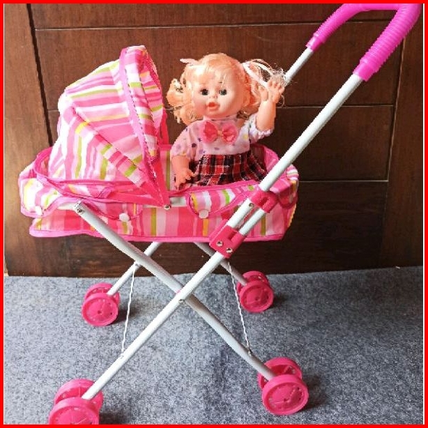 Mainan Anak Dorongan Stroller Boneka Baby Girl Boneka Rangka Besi