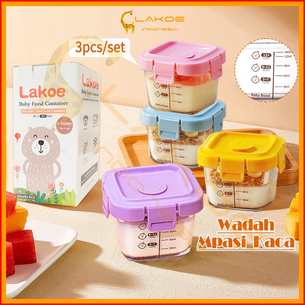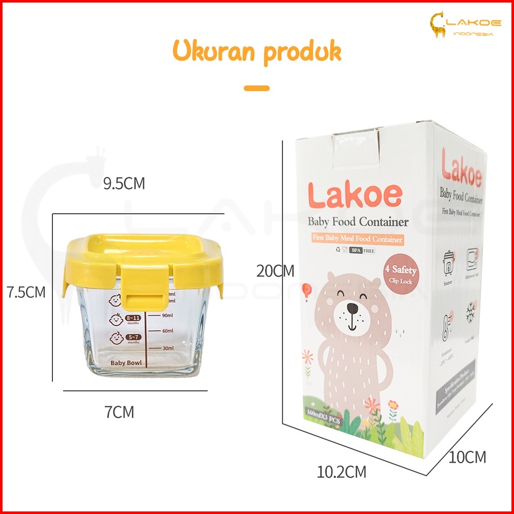 Lakoe 3pcs Set Wadah Mpasi Kaca Food Container Mpasi Kaca Tempat Makan Bayi