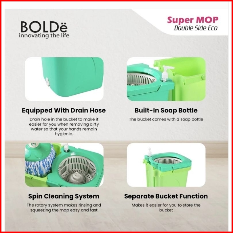 Alat Pel Supermop Bolde Double Side Eco Alat Pel Lantai Otomatis Super Mop