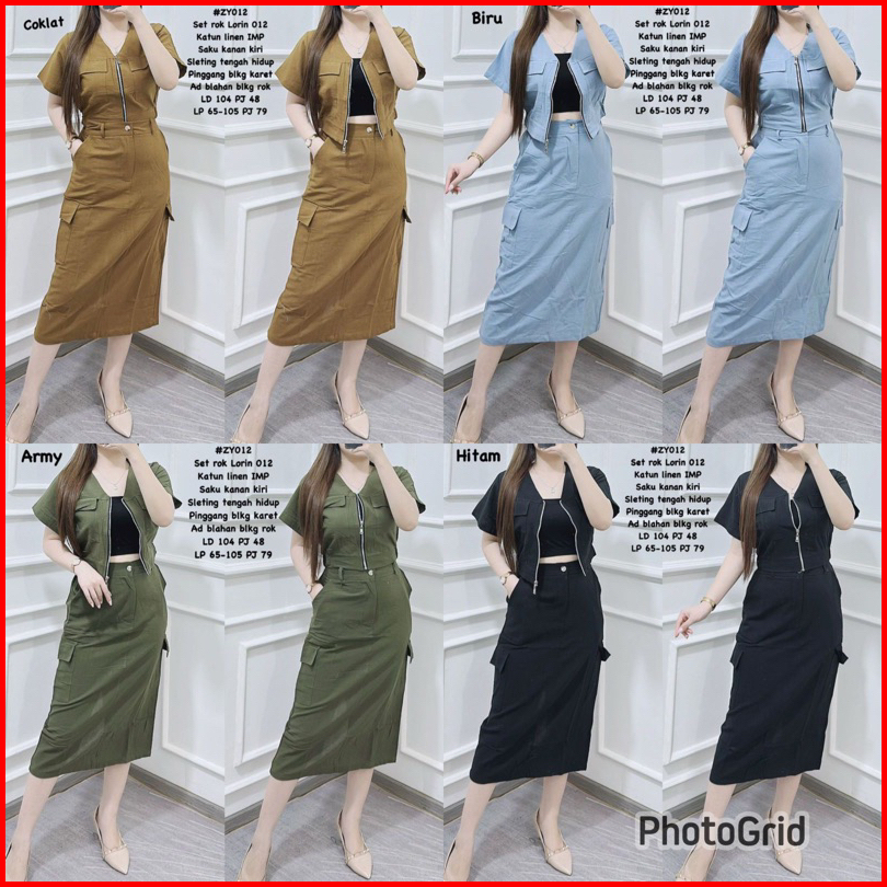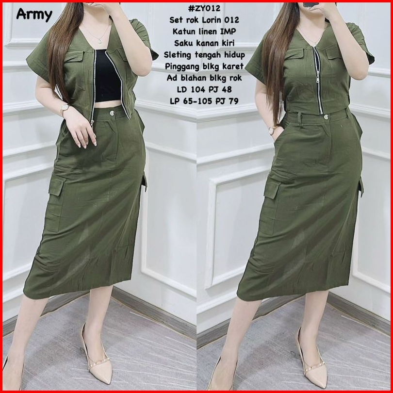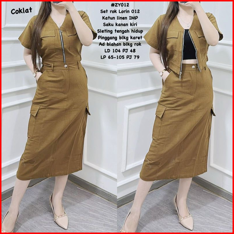 Stelan Rok Cargo Lorin Stelan Wanita Linen