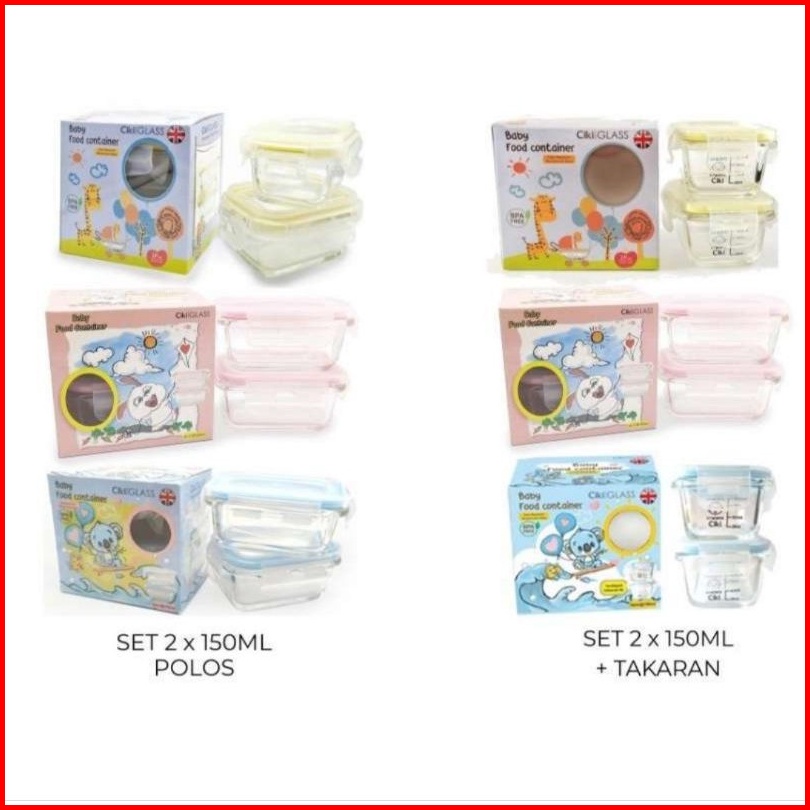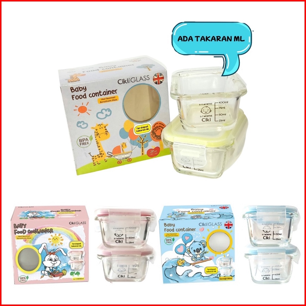 2pcs Ciki Glass Baby Food Container Wadah Kaca Mpasi 150ml