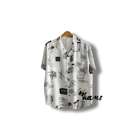 Kemeja Pria Vintage Casual Abstark Lengan Pendek Retro Pantai Hawai Unisex