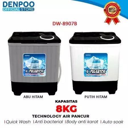 DENPOO MESIN CUCI 2 TABUNG DW 8907B 4P 8KG (FREE ONGKIRRR)