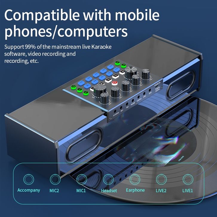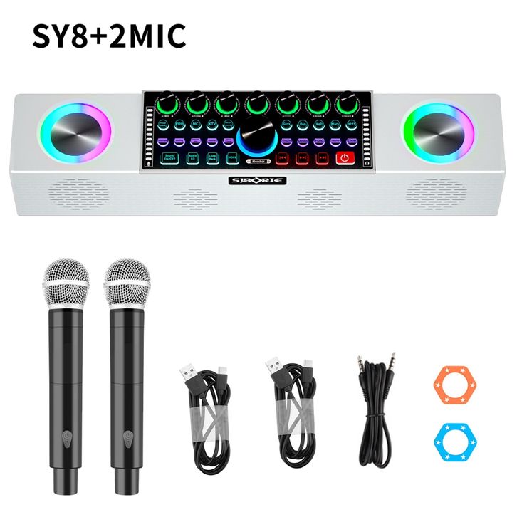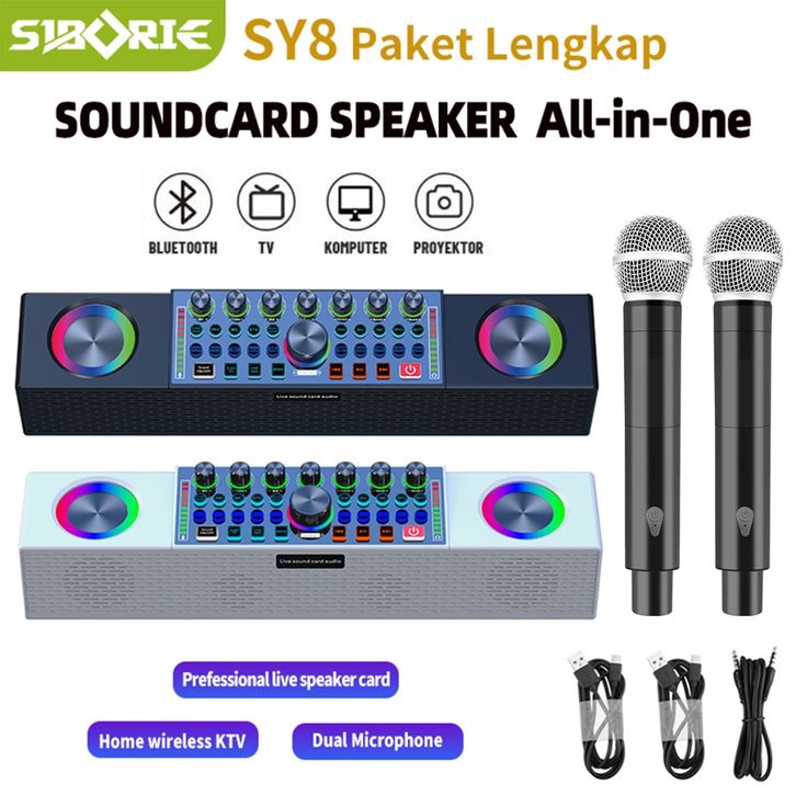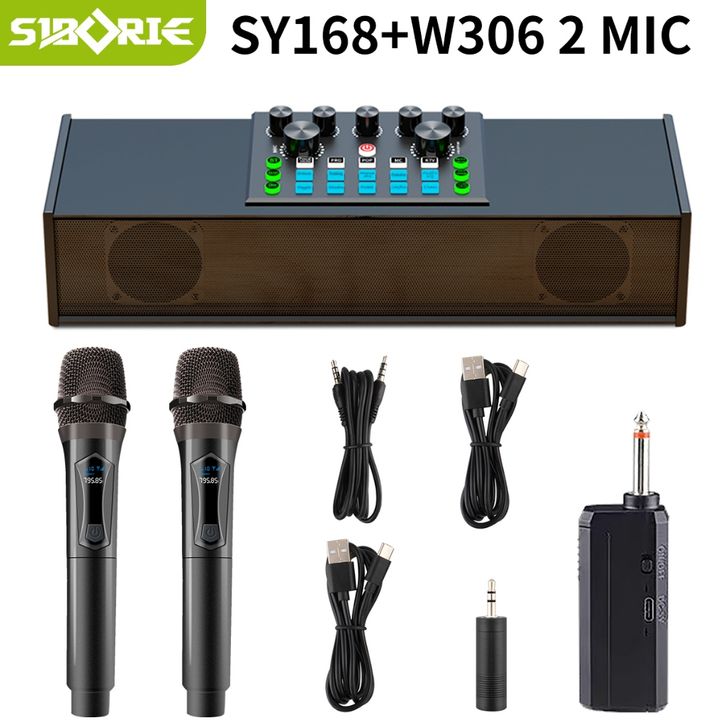SIBORIE SOUNDCARD SPEAKER ALL-IN-ONE SY168/SY8 BLUETOOTH SOUND CARD WITH WIRELESS TWO MICROPHONE WITH EXTERNAL SPEAKER