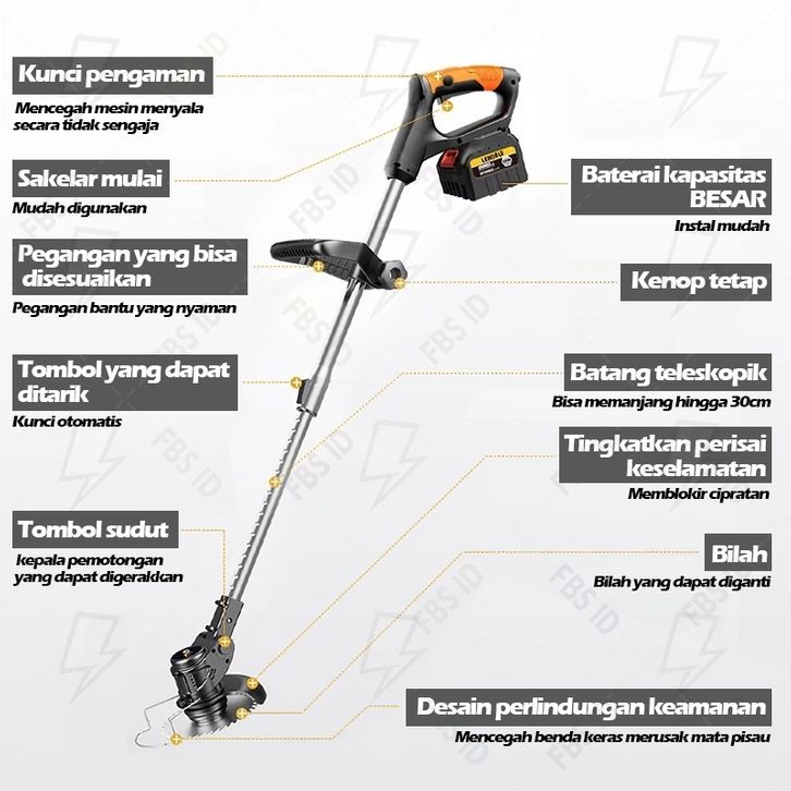 FBS Kualitas Tinggi 188V/88V/12V Mesin Potong Rumput Pemotong Rumput Listrik Rumput Baterai PROMO SPECIAL