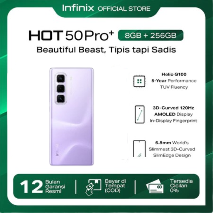 Hp Infinix HOT 50 Pro+ 8/256GB NFC Dreamy Purple Tanpa DP - Official Store