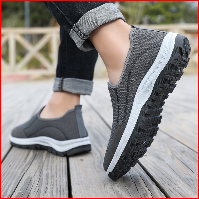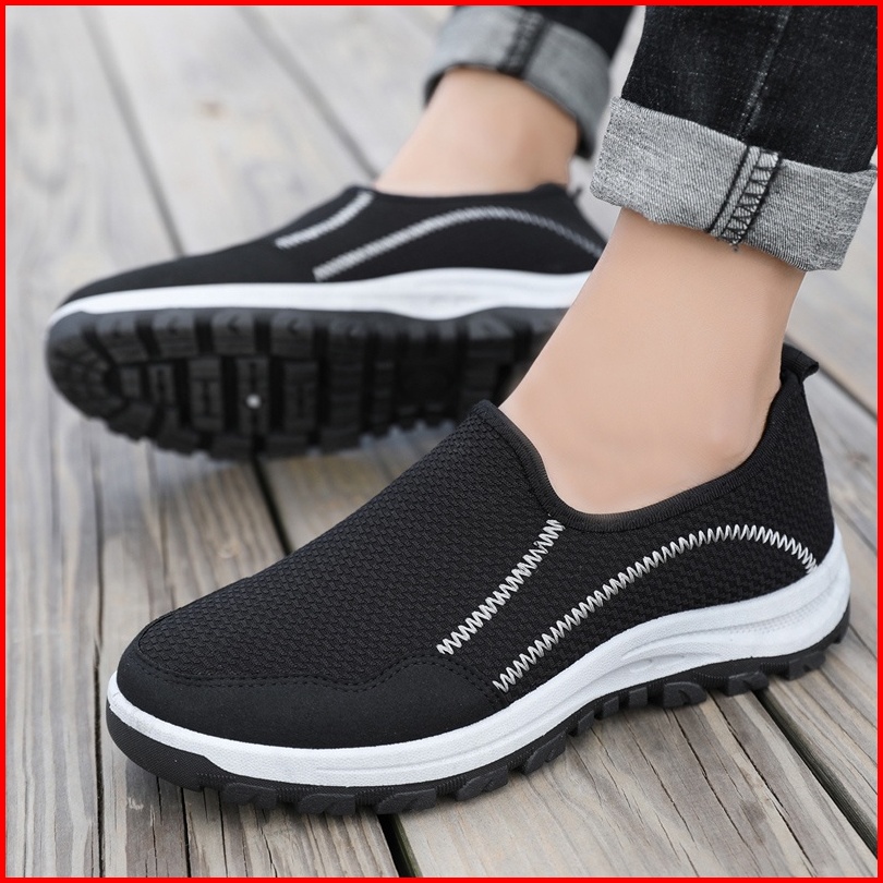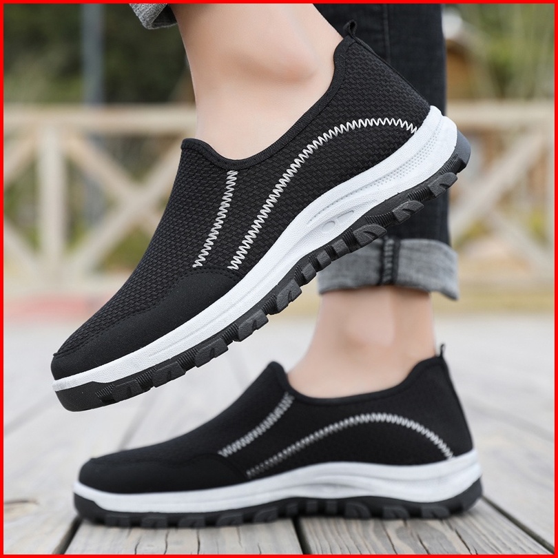 Highland Sepatu Slip On Pria Original Sneakers Slop Sepatu Kerja Casual Hitam Sepatu Kantor Mc603