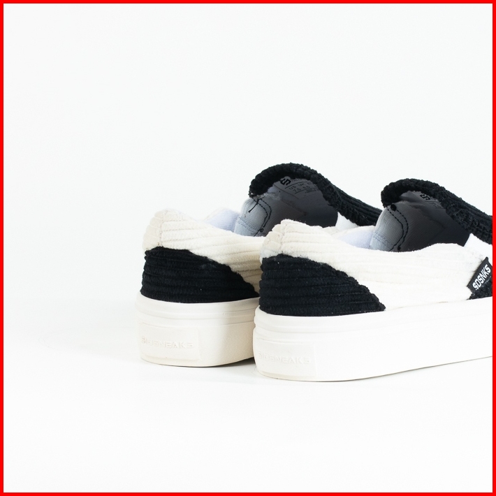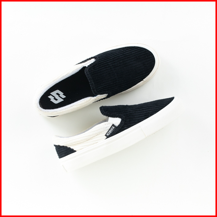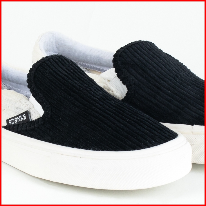 Sidsneaks - Sepatu Slip On Pria Exelas Corduroy Two Tone - Black Broken White