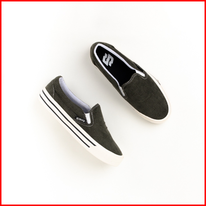 Sidsneaks - Sepatu Slip On Pria Exelas Corduroy - Olive Green