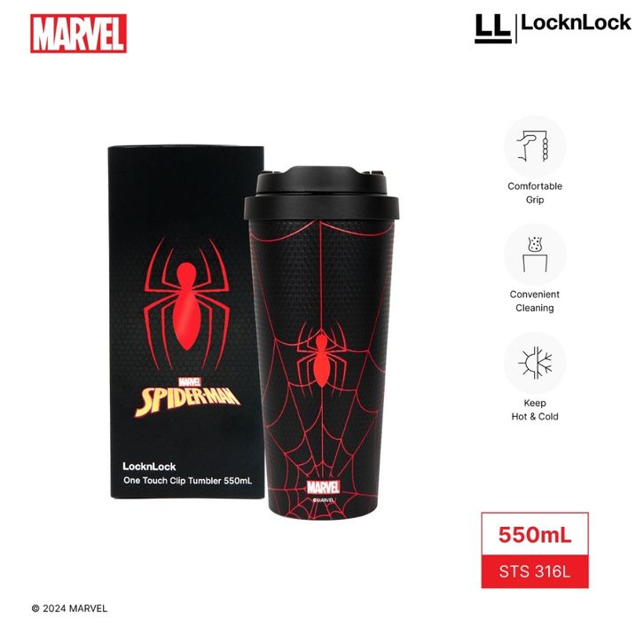 BOTOL MINUM LOCKNLOCK EXCLUSIVE ONE TOUCH CLIP TUMBLER SPECIAL MARVEL SPIDERMAN 550ML LOCK AND LOCK LIMITED EDITION