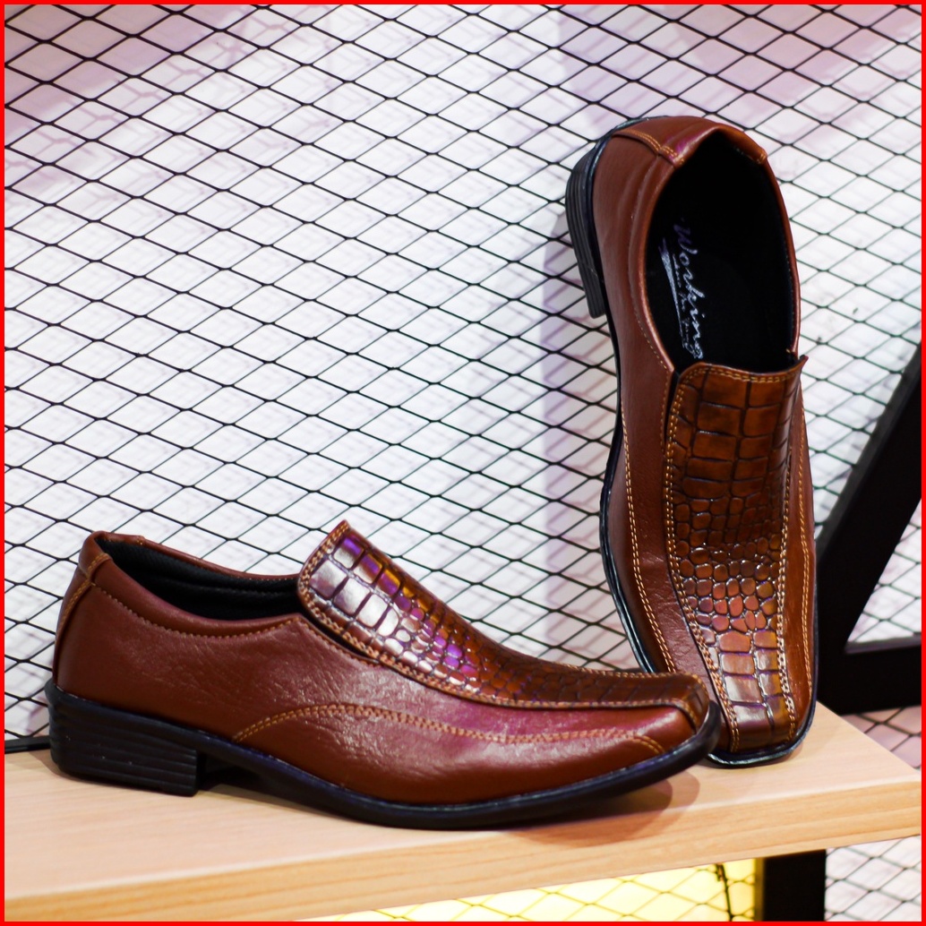 Working Sneakers For You Sepatu Pantofel Pria Motif Kulit Buaya Kode F-11 Size 39-43