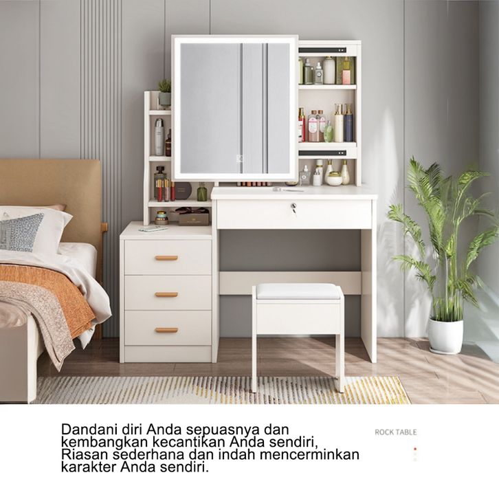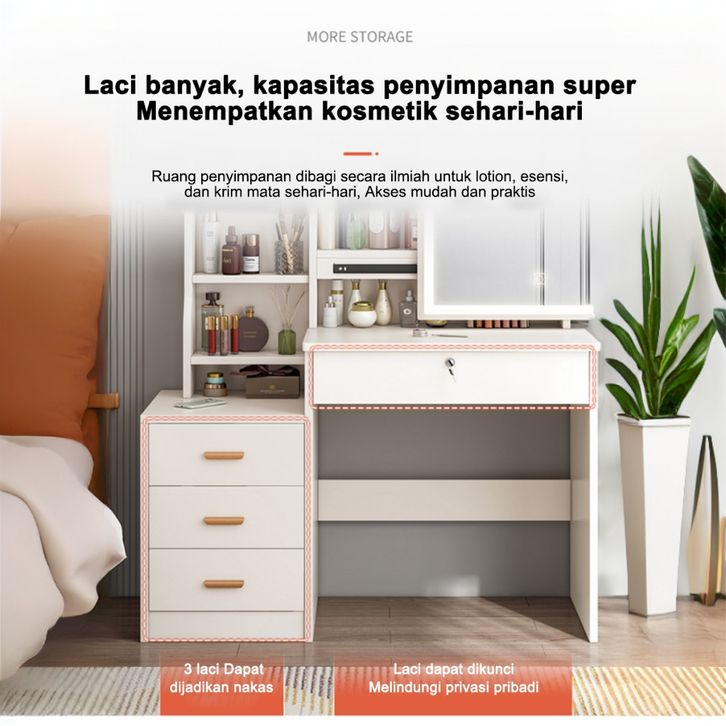 Meja Rias Minimalis Lampu LED Meja Rias Kaca Sliding Model Terbaru 2024 Bergaransi