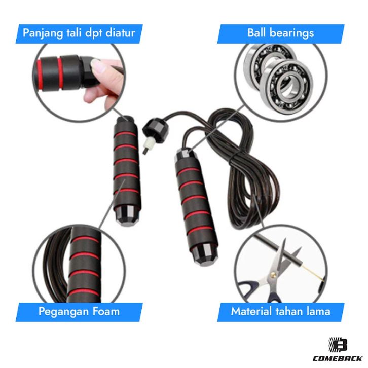 Comeback Premium Skipping Rope Lompat Tali (Rope Size 2.9m) anti slip, Latihan Alat Olahraga