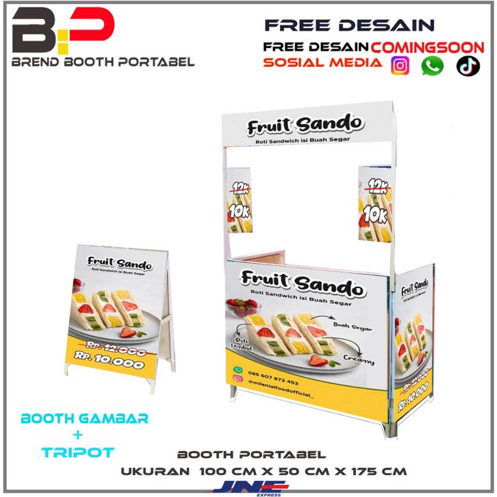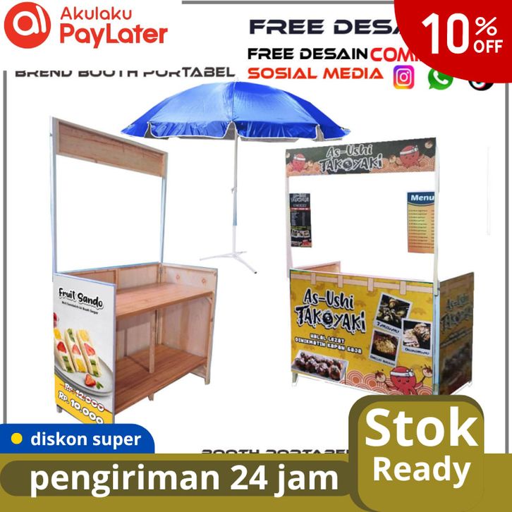 Booth Lipat 100x50x175 Gerobak Lipat Ringan Meja Jualan Portable Booth Portable Booth Makanan Minuman Minimalis