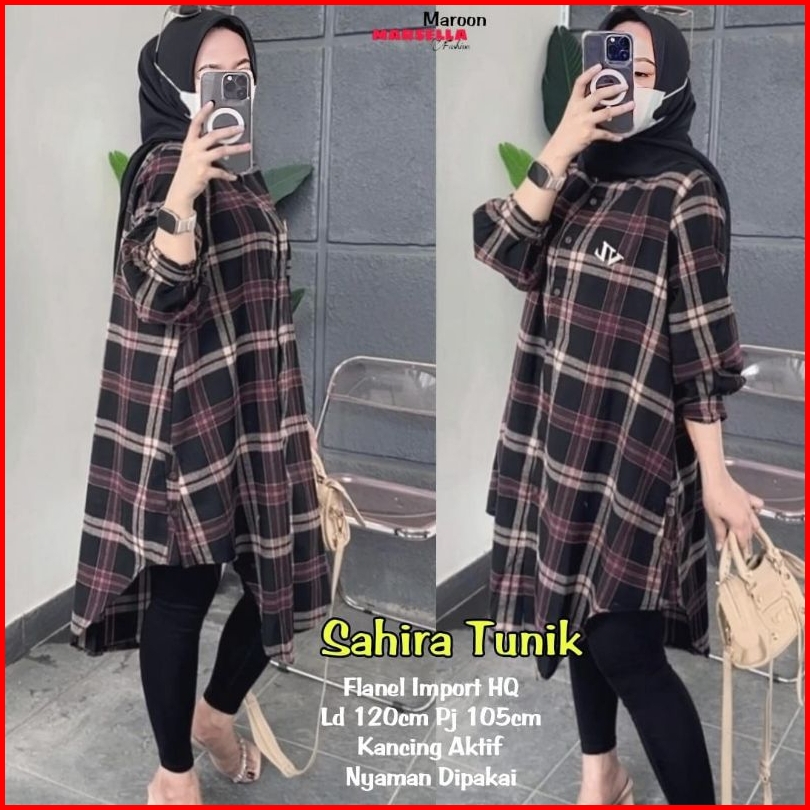 Sahira Tunik By Marsella Tunik Flanel Import Kekinian