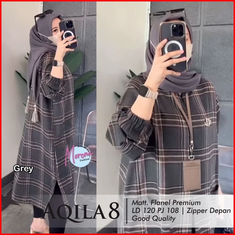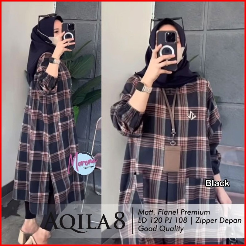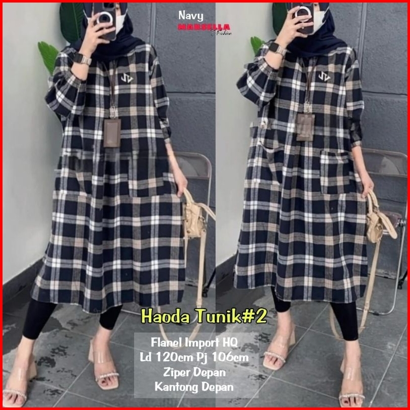 Selly Long Tunik Kotak Kotak Moca Hana Kemeja Tunik Kemeja Flanel Premium Tunik Muslim Baju Atasan Kekinian Flanel Impor