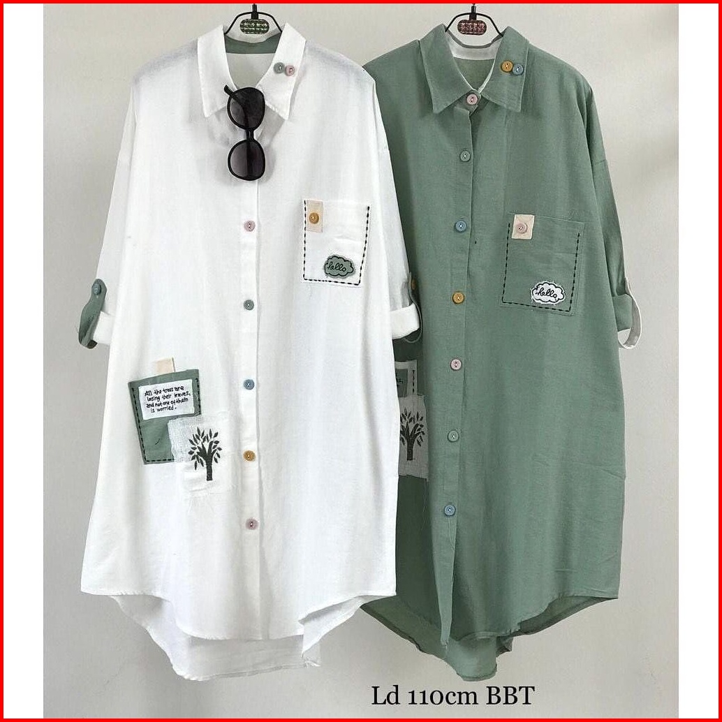 Hello Tunik Bordir Wanita Basic Lengan Panjang Tunik Wanita Korean Style Kemeja Wanita Kekinian Atasan Wanita Remaja Ter
