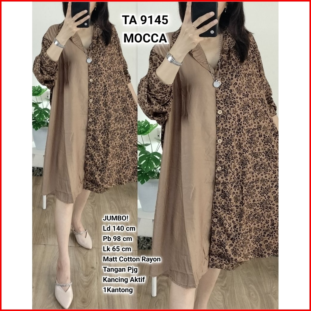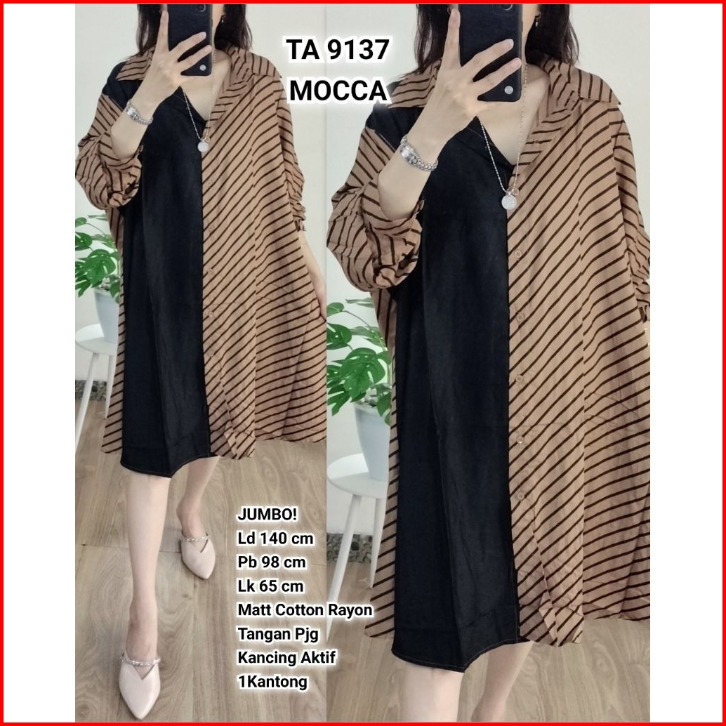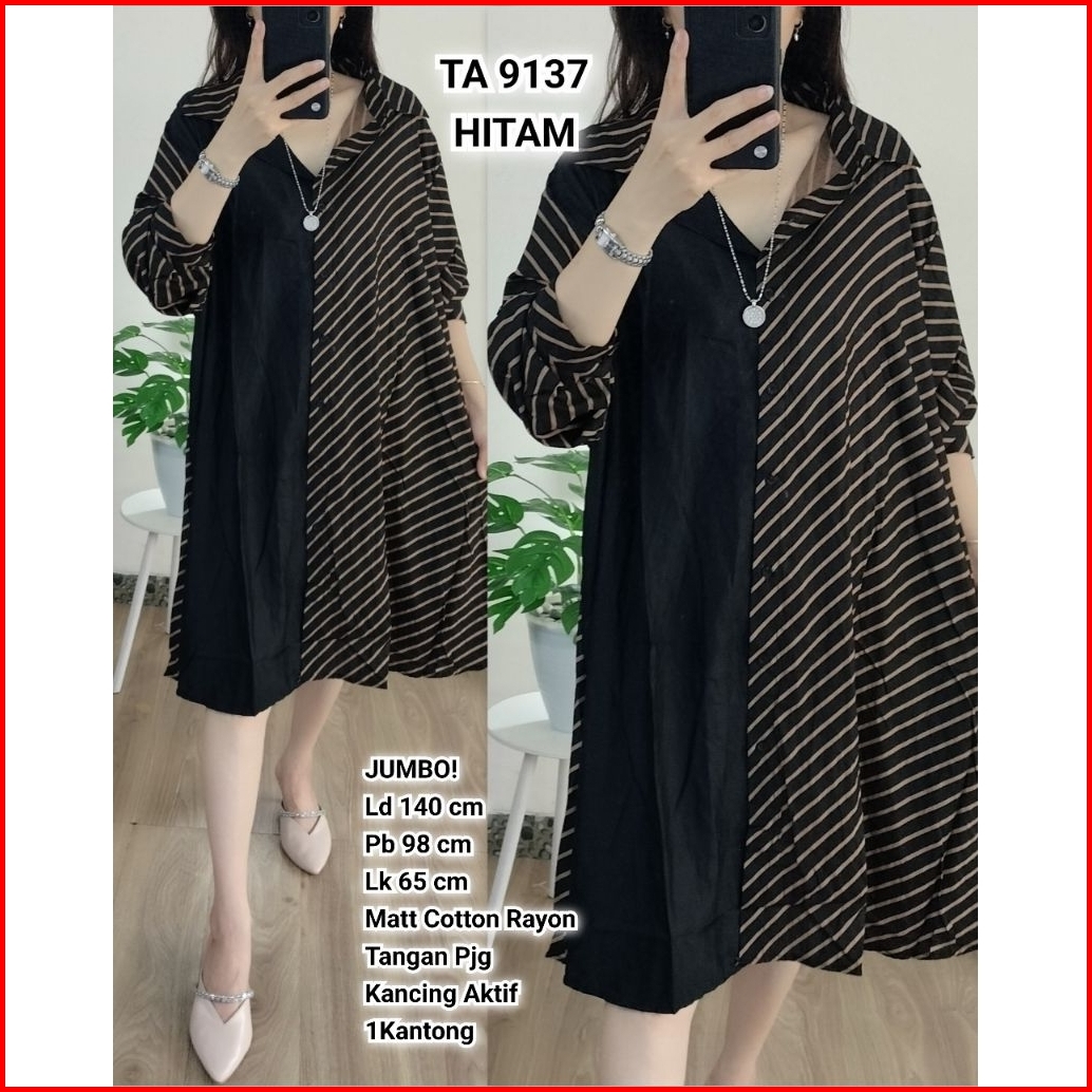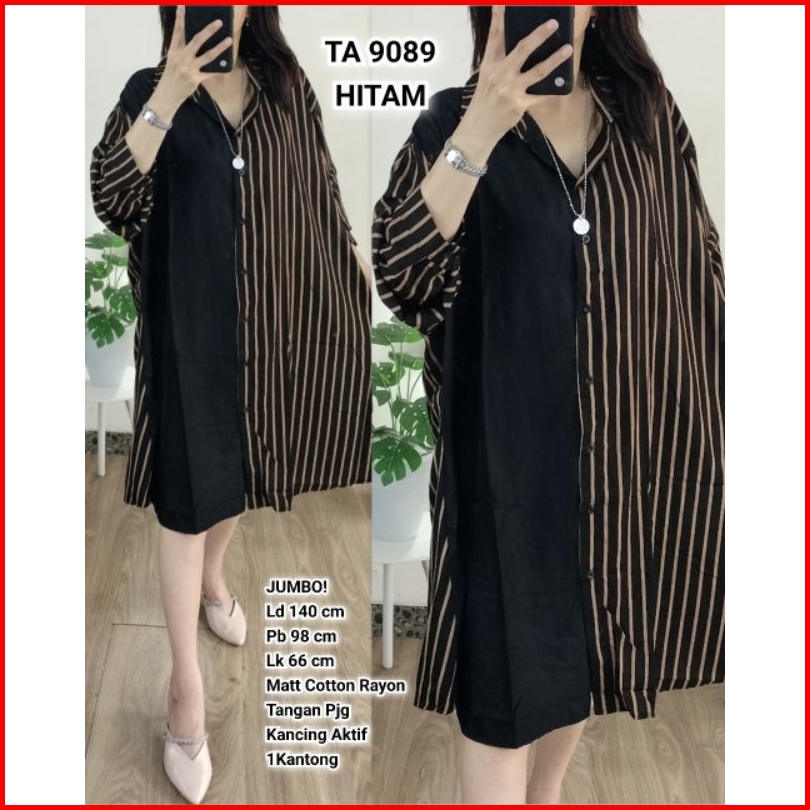 Tunik Jumbo Wanita Ld 140 Kombinasi Salur Polos Bahan Katun Rayon Ta 9137 Ta 9145
