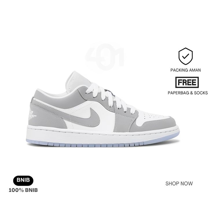 SEPATU NIKE AIR JORDAN 1 LOW WHITE WOLF GREY AUTHENTIC 100% BNIB ORIGINAL SNEAKERS CASUAL PRIA WANITA KEKINIAN