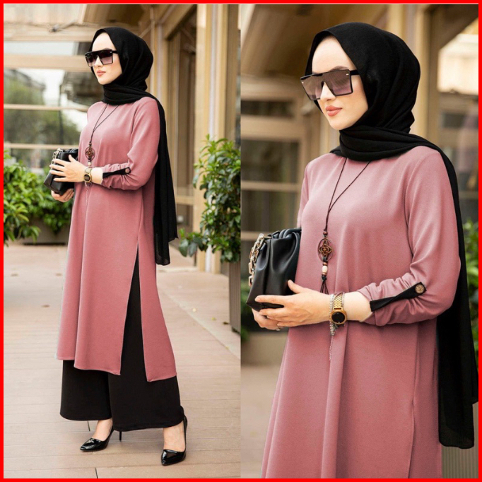 Mega Set Long Tunik Crinkle Airflow Ld 110-115 One Set Yaman Celana Setelan Polos Tunik Jumbo Setelan Polos Kombinasi Cr