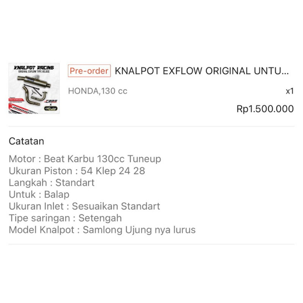 EXFLOW EXHAUSTS ORIGINAL UNTUK SEMUA MOTOR MATIC & BEBEK BY REQUEST DAILY/RACE