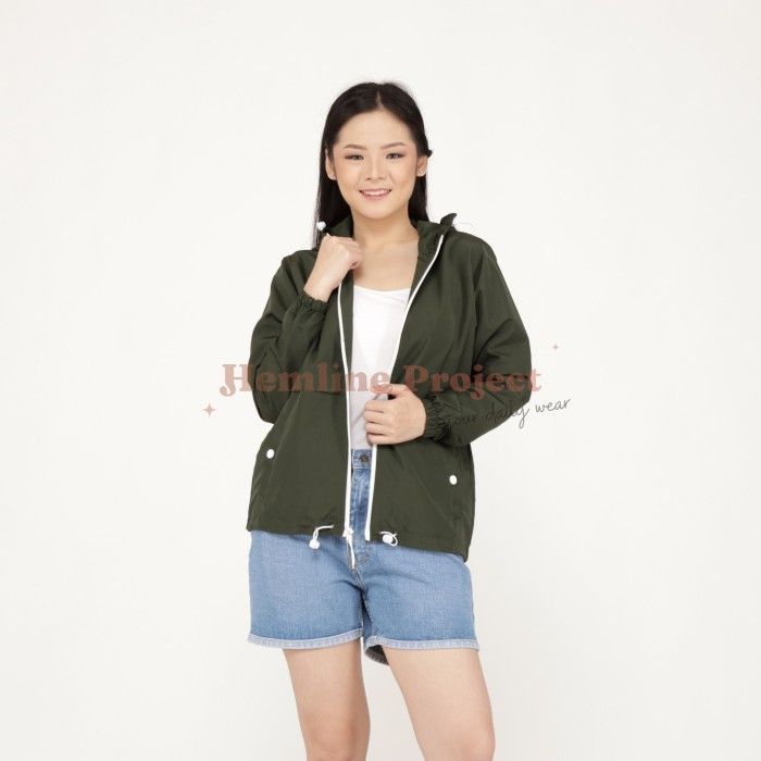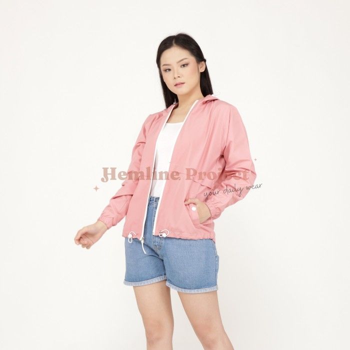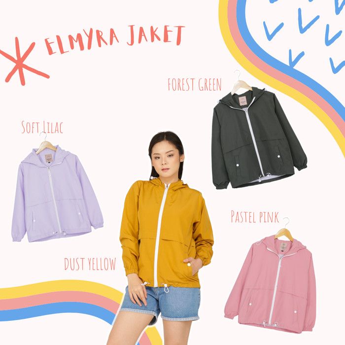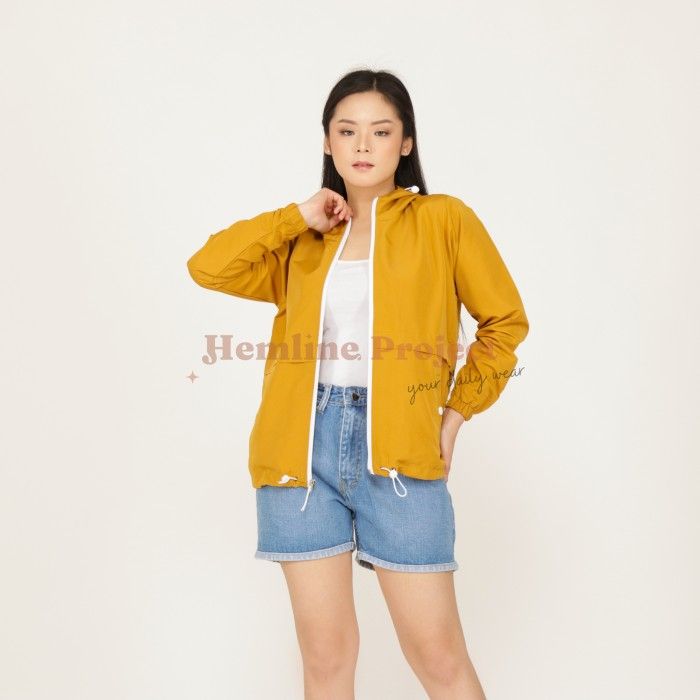 Jaket Parasut Hoodie Wanita - Elmyra Jaket - Dust Yellow XL (Fit L-XL)